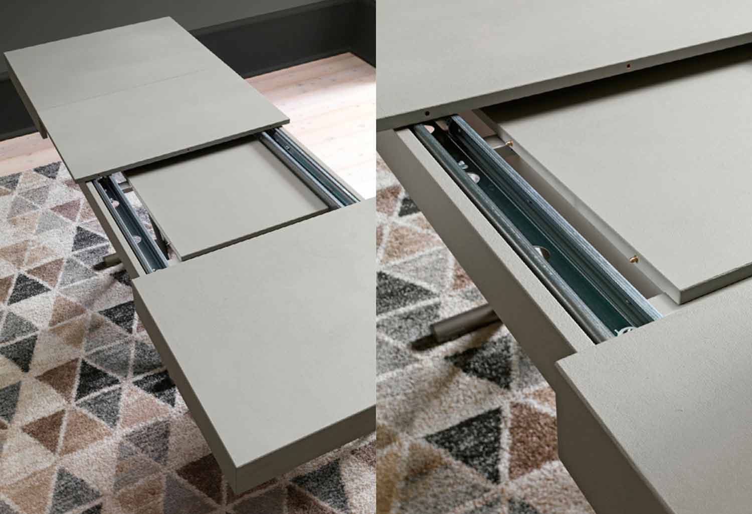 La tapa es rectangular y extensible a través de 2 extensiones internas de 50 cm cada una.