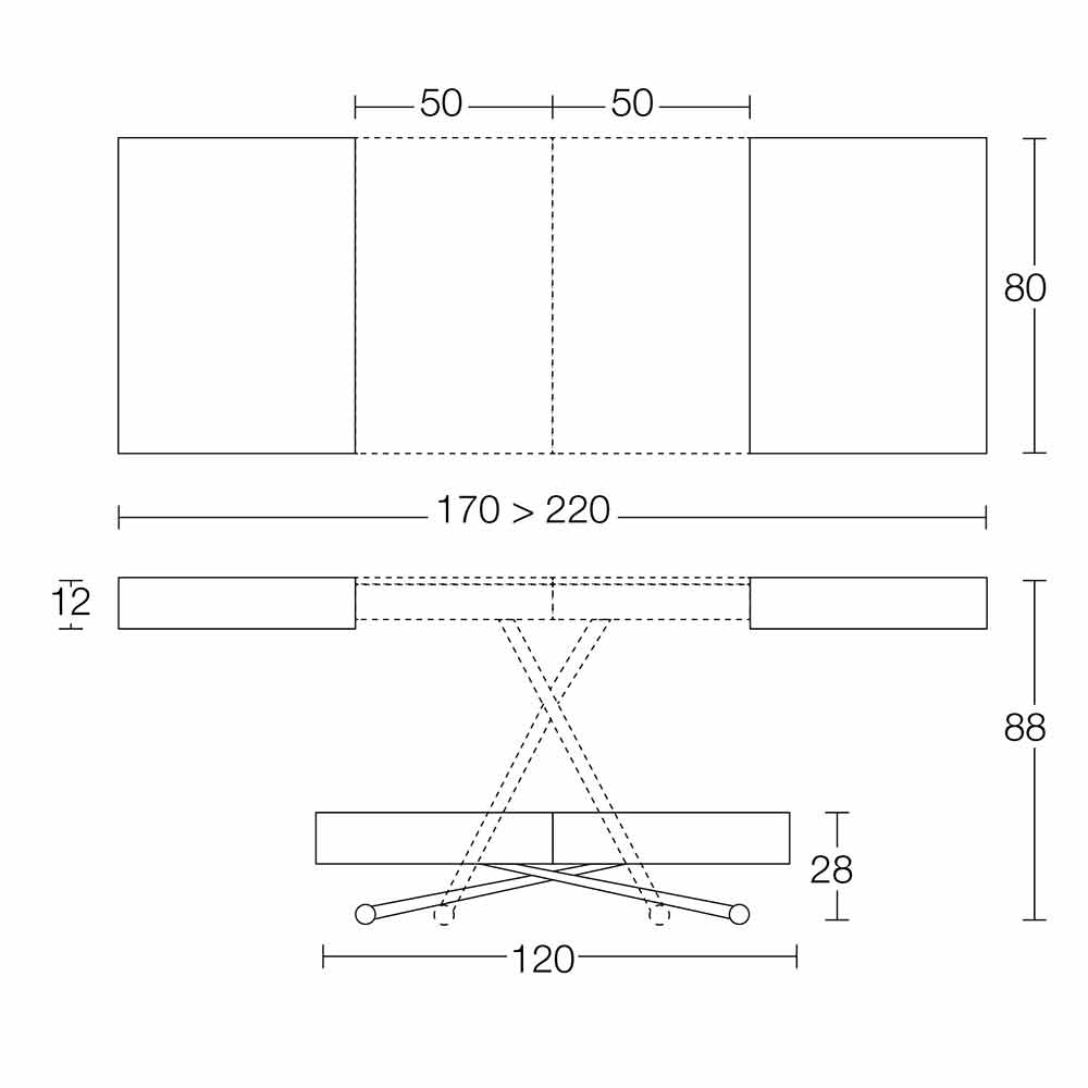 Medidas mesa de centro: L 120 x D 80 x H 28 cm mesa: L 170 (220) x D 80 x H 88 cm