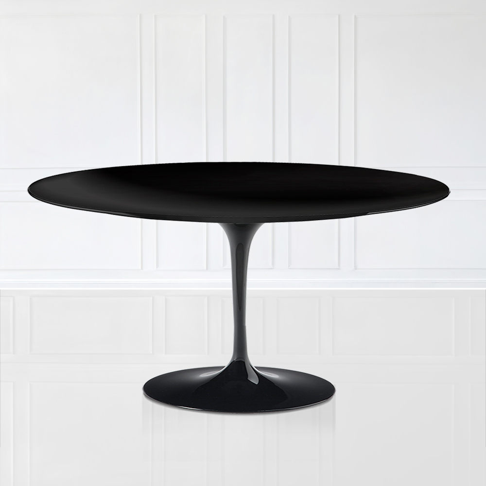 Mesa de comedor íntegramente fabricada en Italia con tapa ovalada en laminado líquido negro y base en aluminio pulido negro . Esta mesa se adapta a cualquier tipo de ocasión de uso y cualquier tipo de diseño. La innovadora forma ovalada es perfecta para tener varios comensales y la forma de la base es excelente para insertar varias sillas. Gracias a sus acabados y líneas simples y elegantes, se puede insertar en todos los estilos de decoración, desde el moderno hasta el chic y el retro. Este elemento es la idea ganadora para quienes aman decorar cada estancia de la casa con gusto y originalidad .