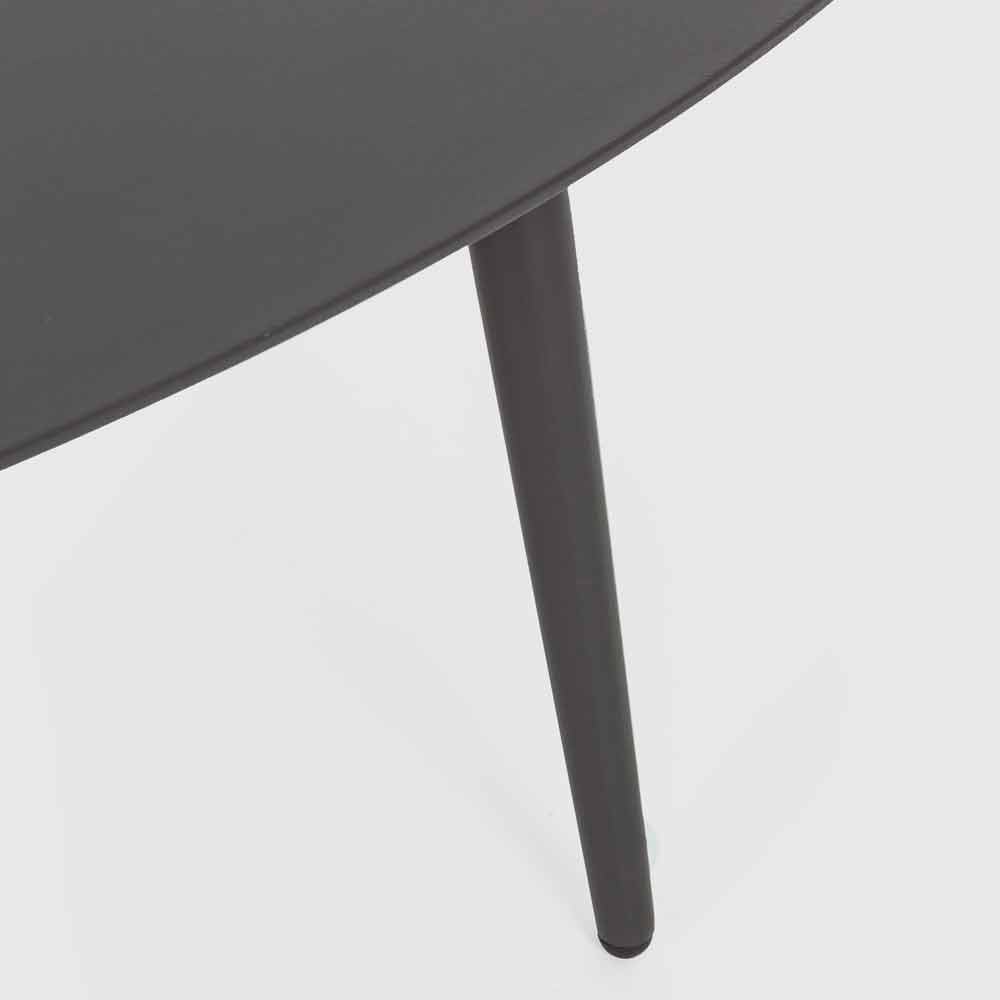 Mesa de comedor ovalada en aluminio pintado antracita.