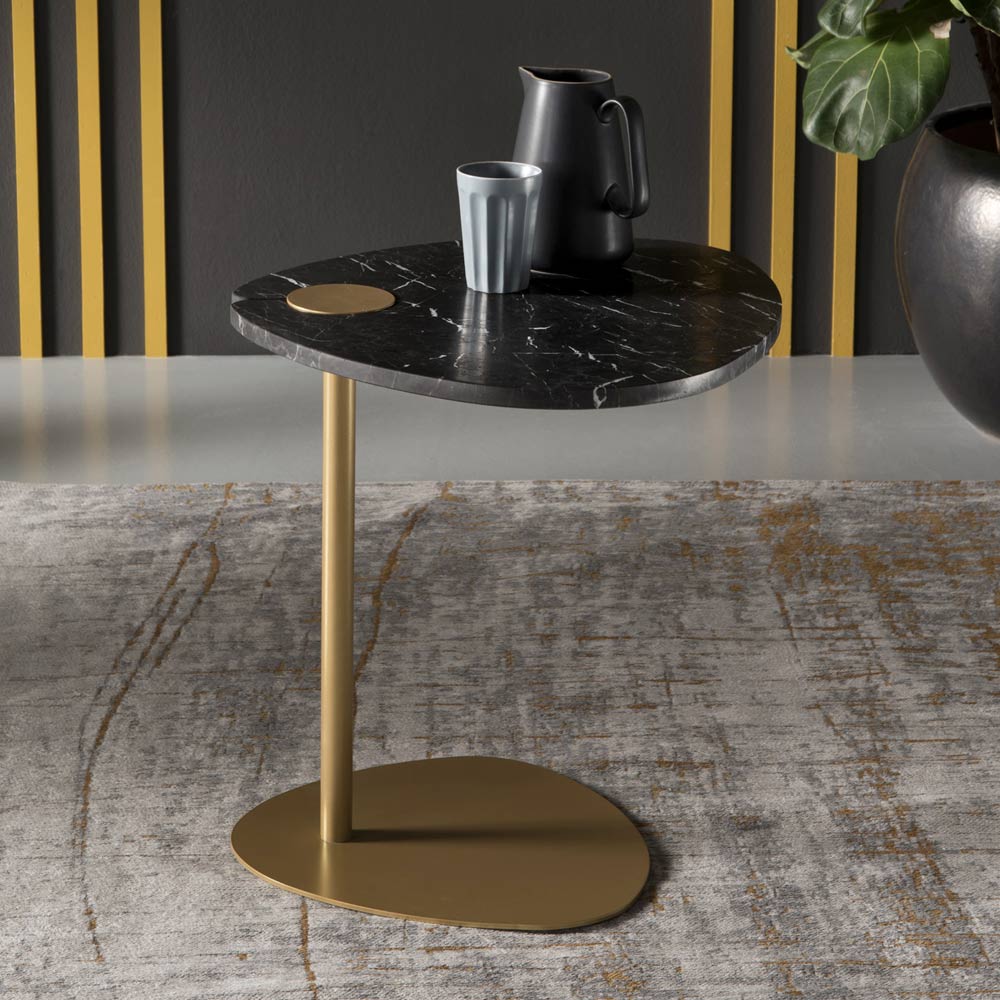 mesita de sofá para el salón está inspirada en las formas irregulares y naturales de los guijarros alisados por el agua. Las particulares e interesantes líneas se diferencian para realzar la estancia y darle un toque de refinamiento. Su
