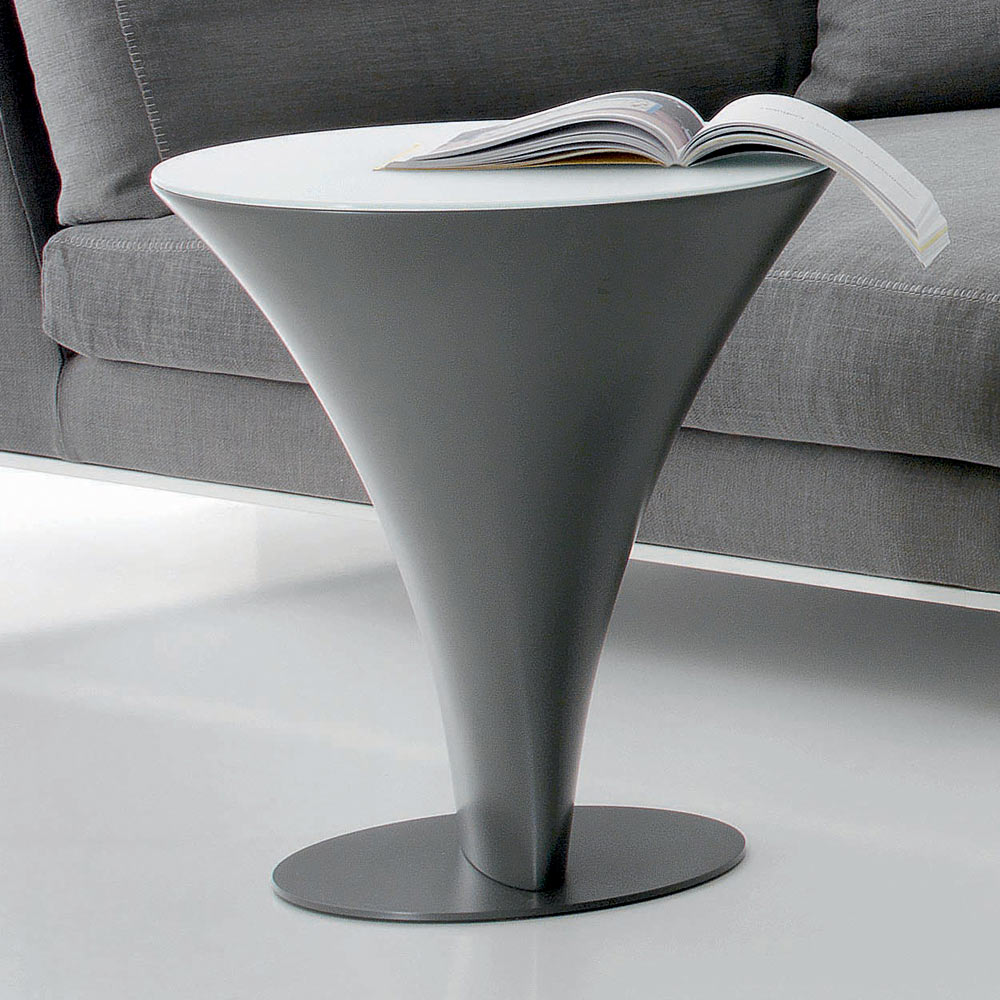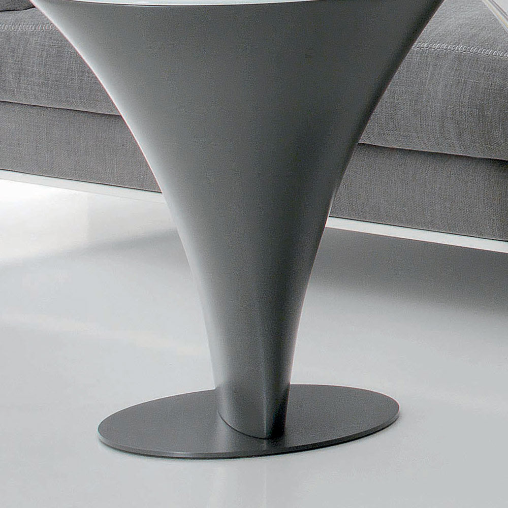 Mesa de centro redonda en metal y tapa de cristal, varios acabados made in Italy.