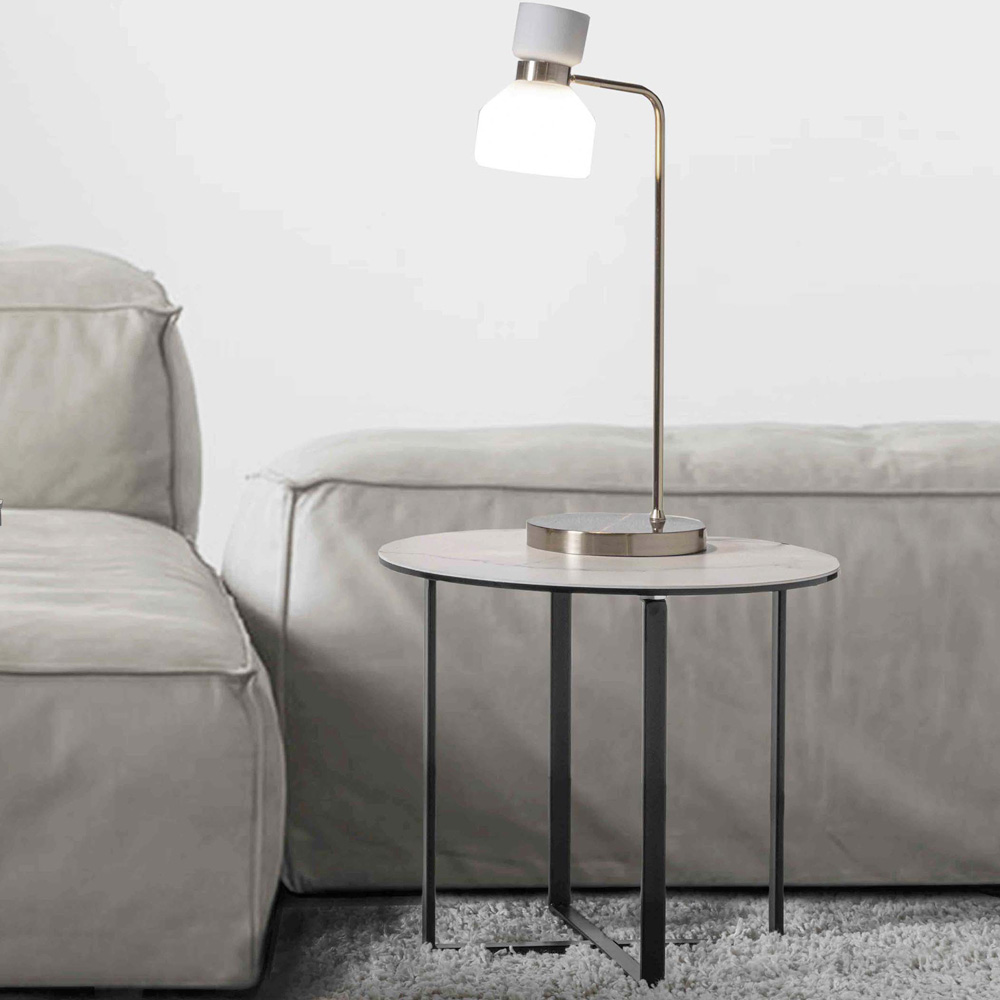 Mesa de centro redonda con tablero de vidrio cerámico de mármol blanco - Anselmo