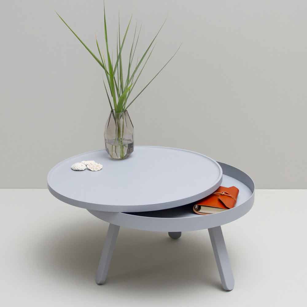 Esta mesa de centro tiene una estructura de maderamaciza denogal , roble o fresno que le da estabilidad y resistencia al producto y un tablero redondo en acero lacado mate que es fácil de limpiar gracias al uso de un simple paño húmedo. Sus formas sencillas unidas a los materiales de calidad utilizados y el trabajo de expertos artesanos permiten crear un producto final capaz de combinar tradición y modernidad, adaptándose mejor a cualquier ambiente con un estilo contemporáneo. El elemento que distingue al artículo es sin duda la tapa que se puede abrir gracias a un movimiento deslizante que se esconde en el interior de un práctico compartimento contenedor ideal para organizar objetos como revistas, libros y mandos a distancia para tenerlos siempre a mano. El reducido tamaño y el diseño minimalista permiten enriquecer incluso los salones más pequeños con personalidad y carácter, permitiéndoles no renunciar a amueblar con objetos de diseño de fuerte impacto visual. Gracias a la amplia gama de colores y acabados disponibles, la mesa podrá adaptarse a las necesidades de quien busca un producto refinado pero también de quien quiere tener un toque de color y vivacidad en su propio hogar.