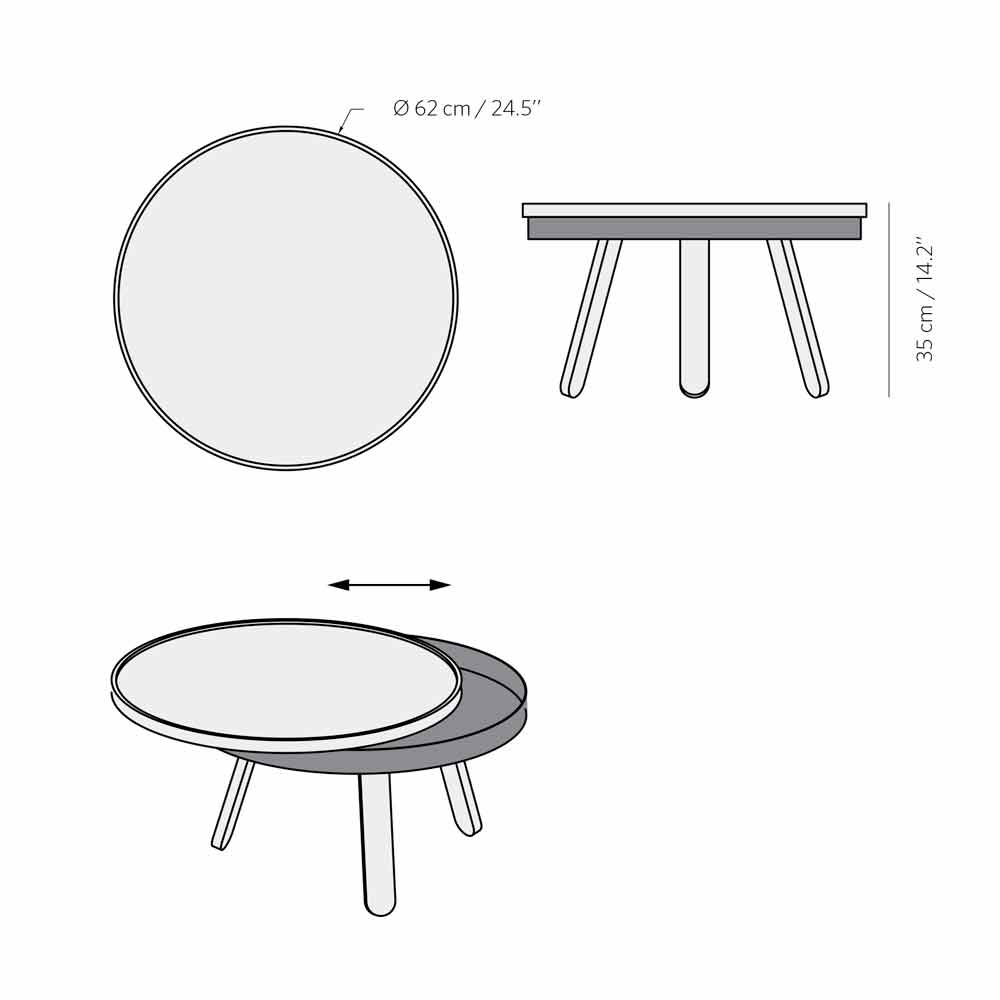 Medida (mesa cerrada) : diámetro 62 x H 35 cm