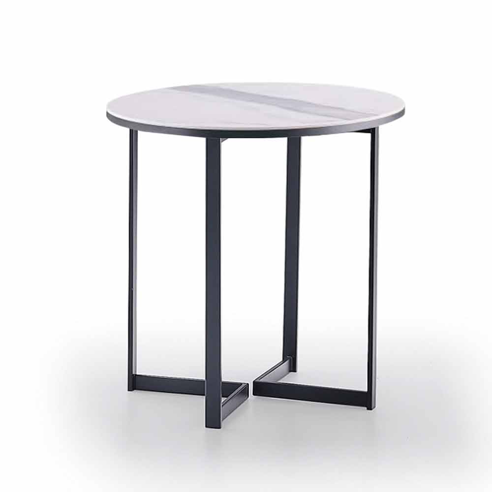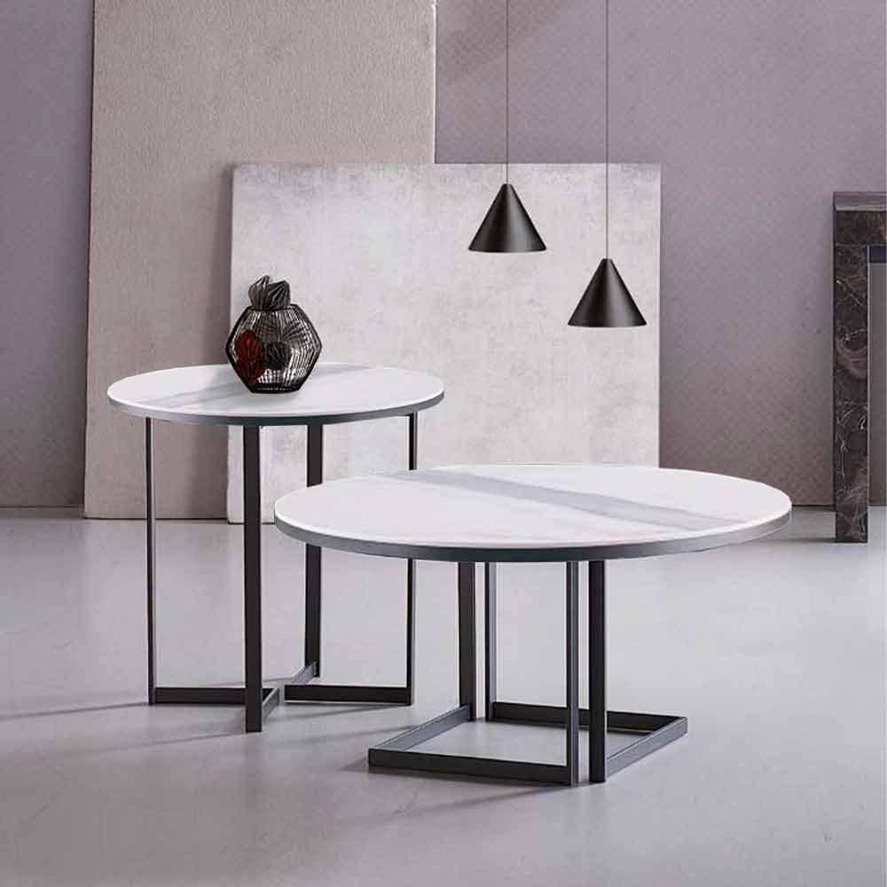 Mesa de centro moderna en metal lacado con tapa de gres efecto mármol, Made in Italy de alta calidad.