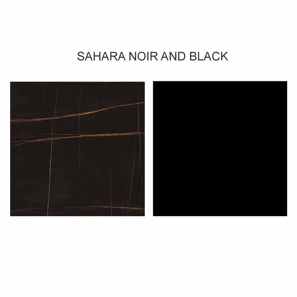 Mesa de centro Made in Italy compuesta por una base de metal sobre la que se posiciona la estructura formada por listones de madera de fresno engrasados a mano en acabado gris negro. La encimera, por su parte, tiene forma redonda y está realizada en gres pulido efecto mármol.