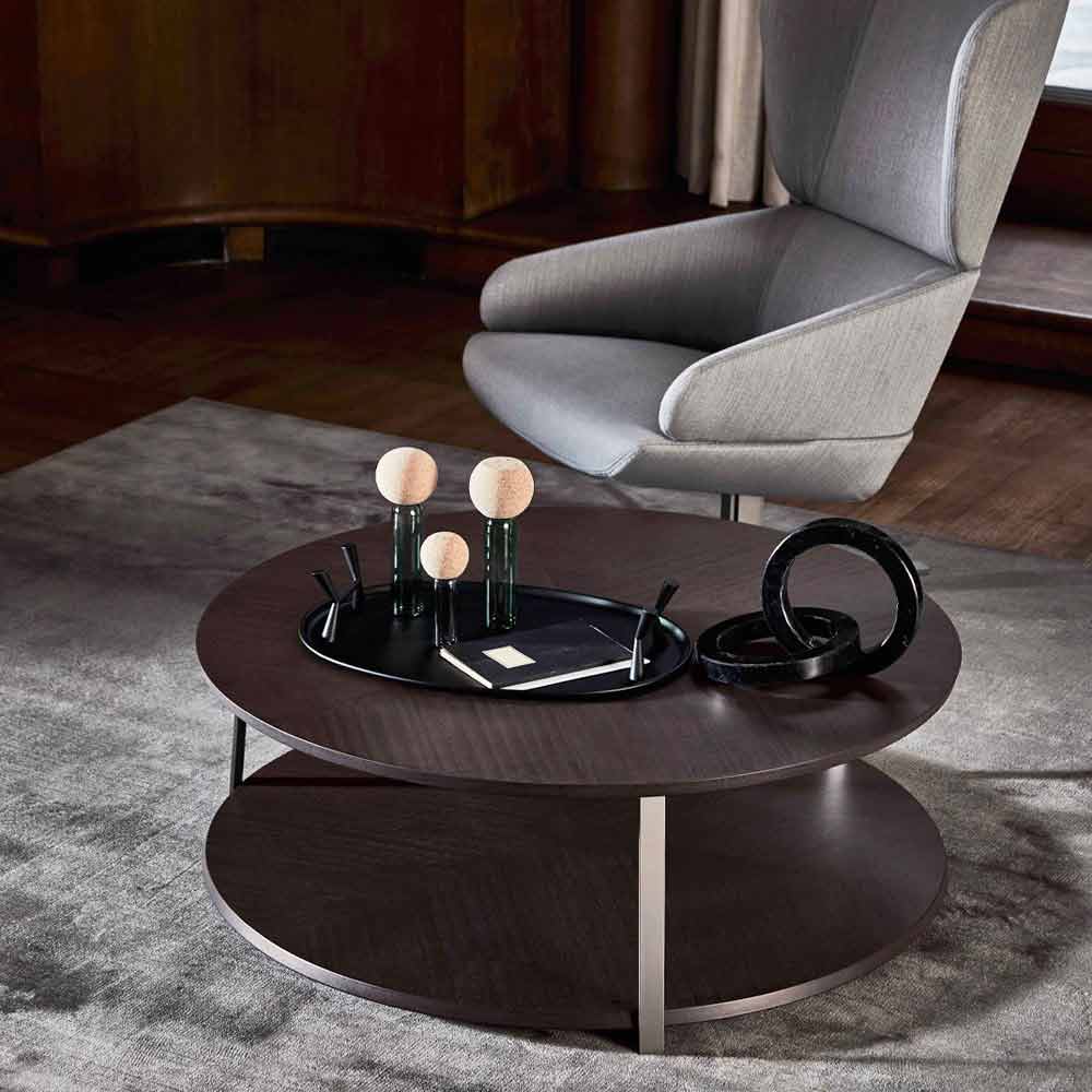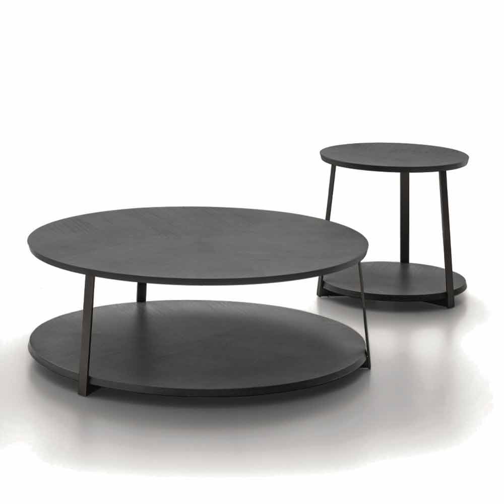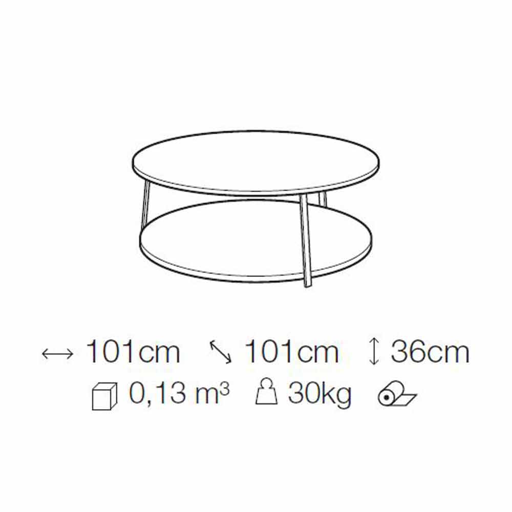 Mesa de centro redonda en mdf con estructura metálica Made in Italy, lujo.