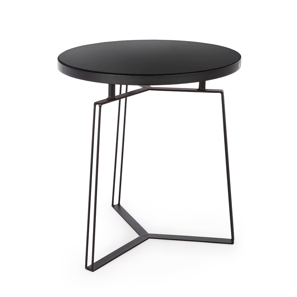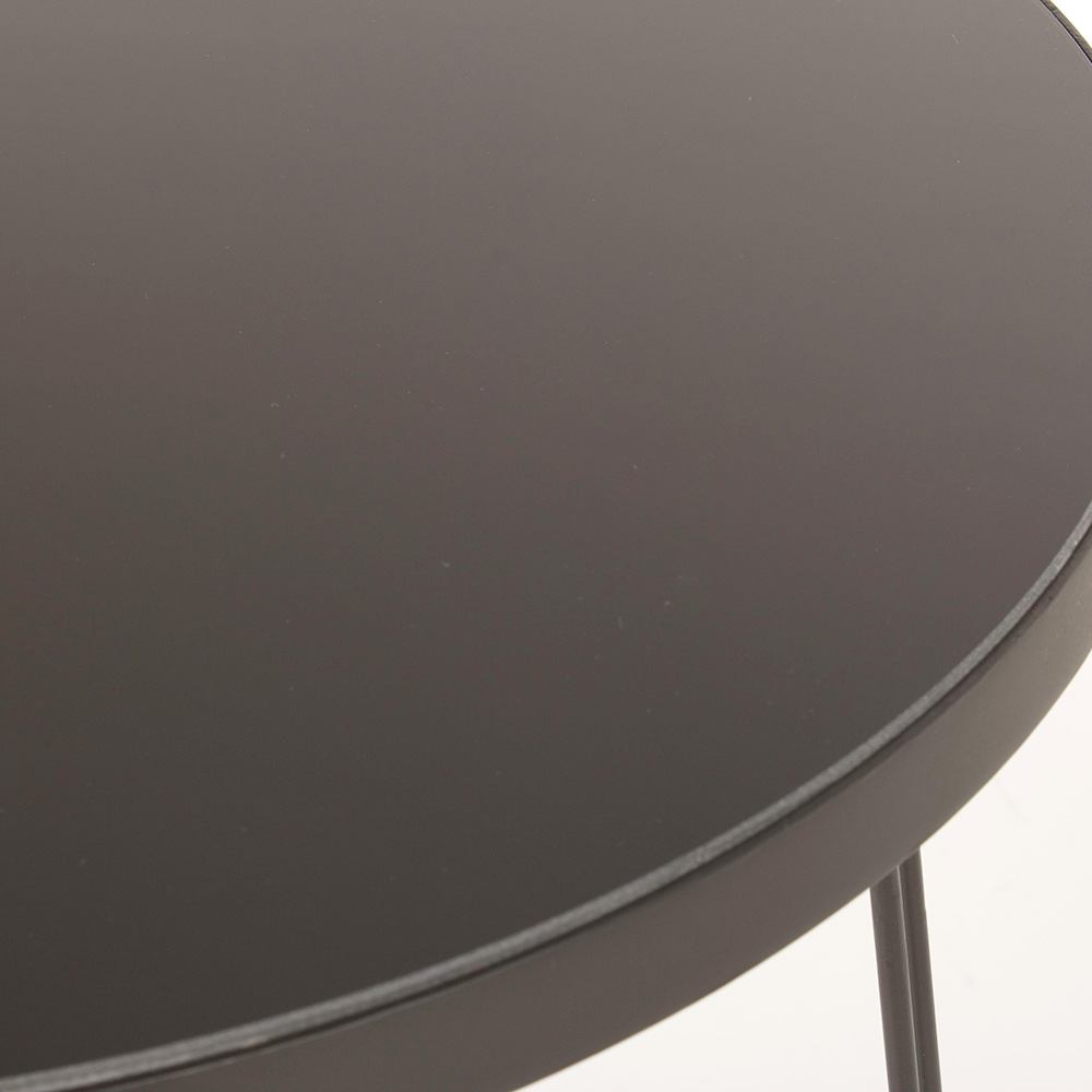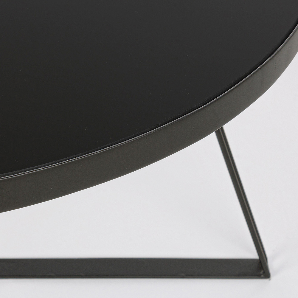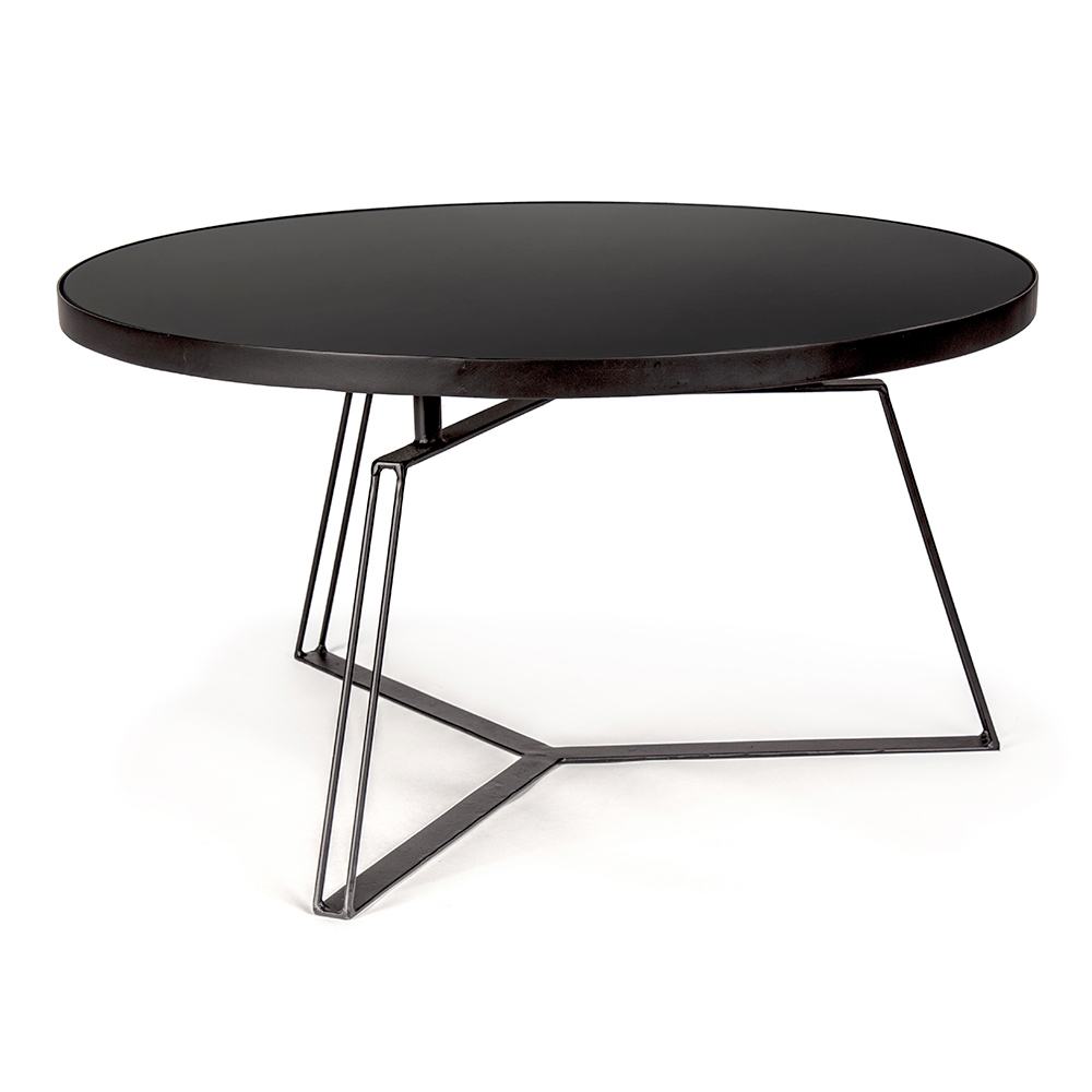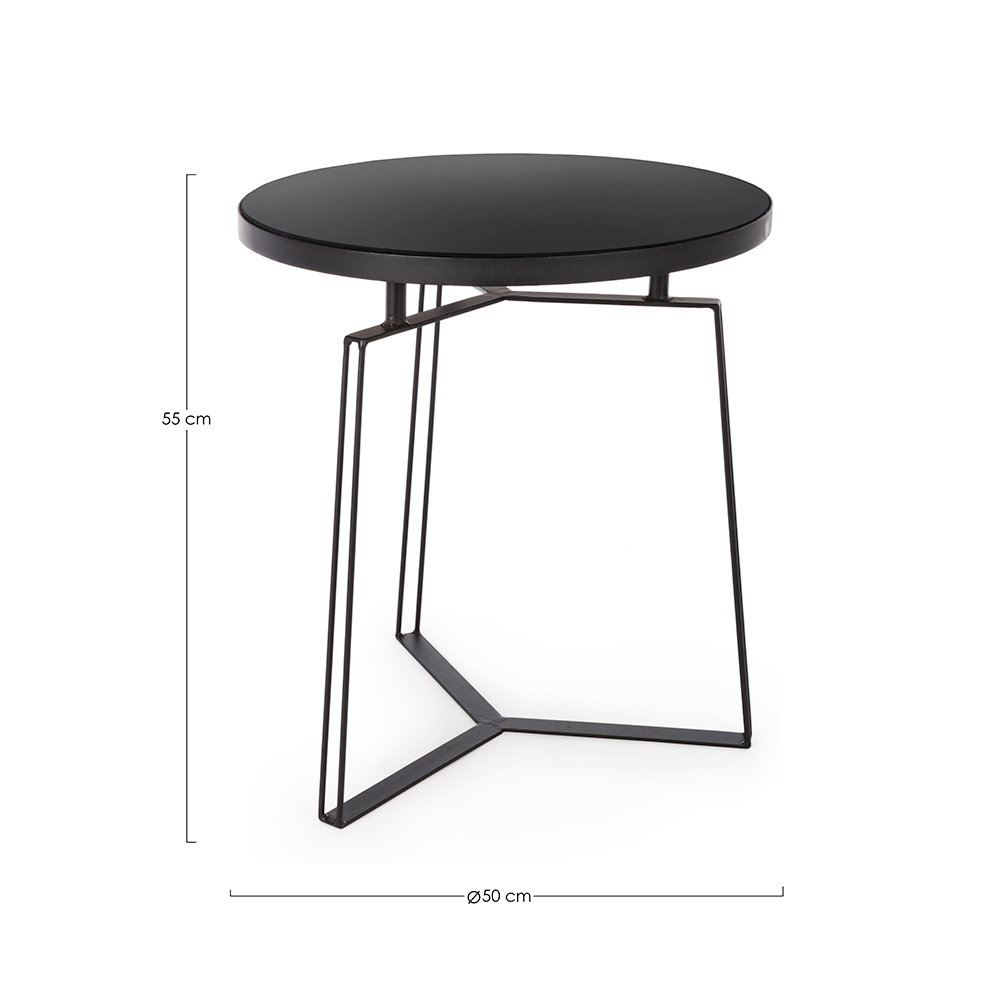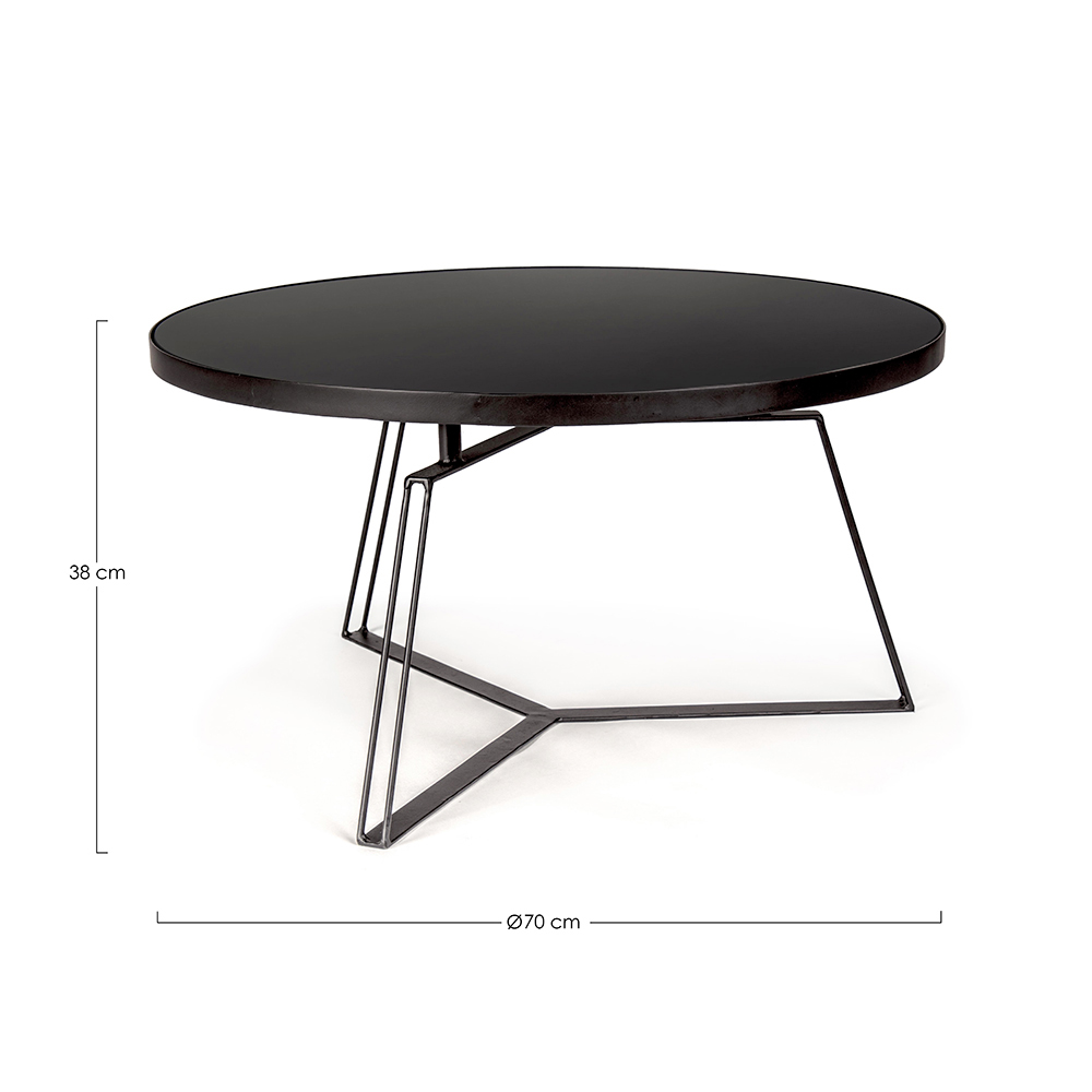 Mesa de centro redonda en acero negro y tapa de cristal, 2 medidas.