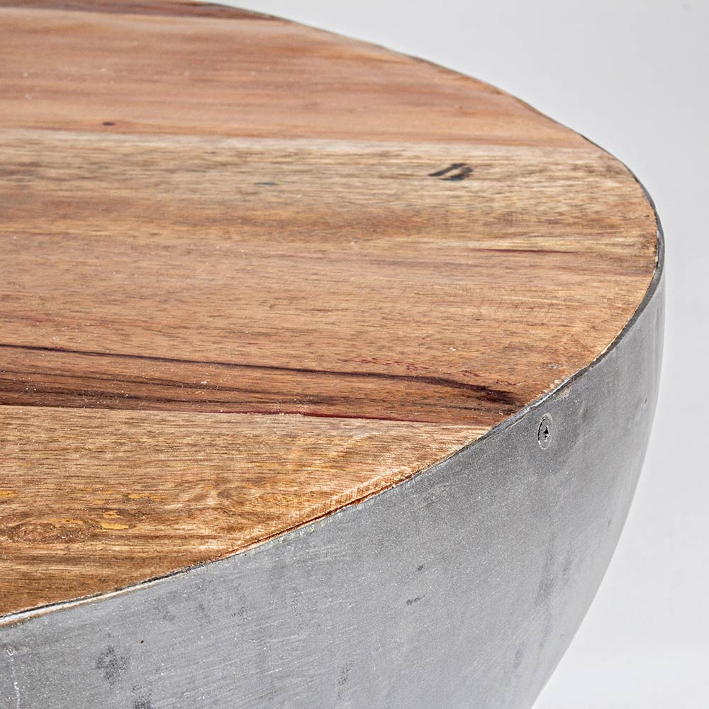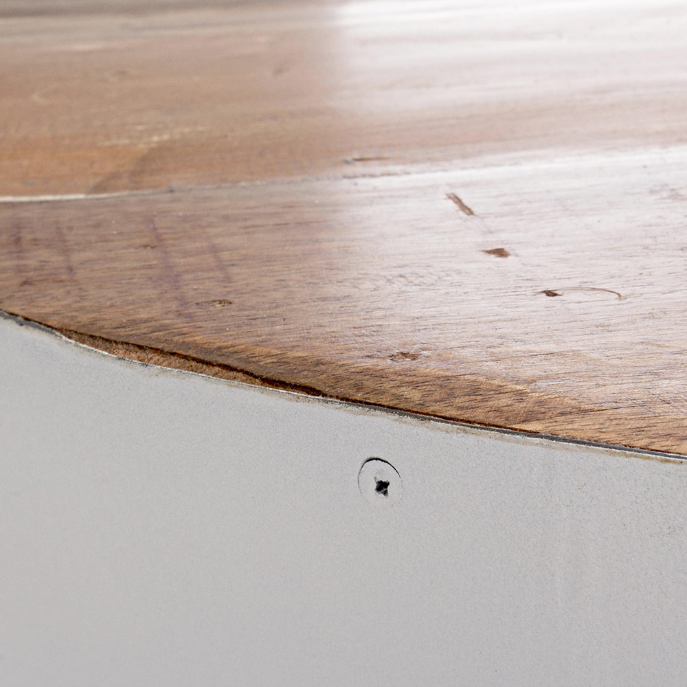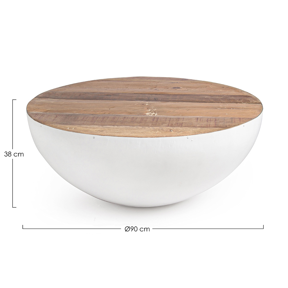 Mesita redonda en madera reciclada y acero, 2 colores y 2 medidas.