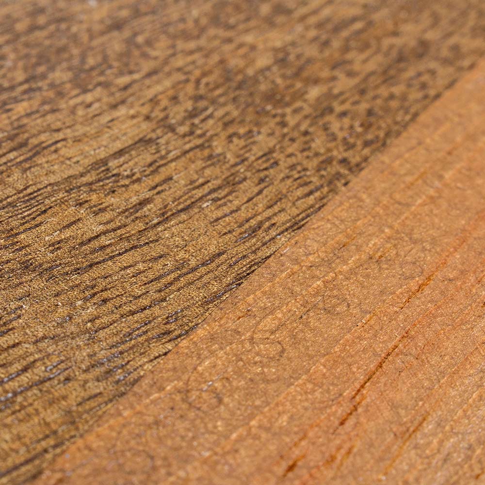 tapa de madera reciclada con un acabado a base de nitrocelulosa.