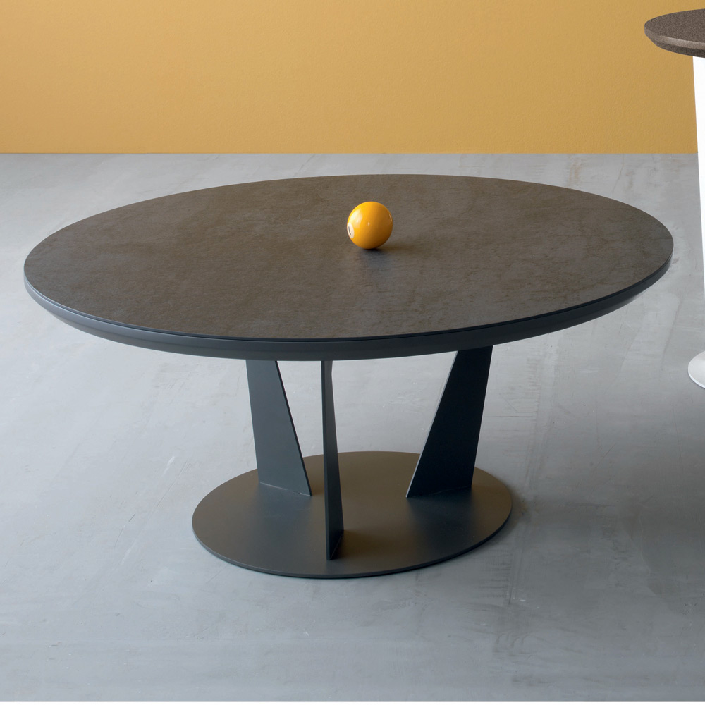 Mesa de centro redonda en metal inclinado y tapa de cerámica, 3 medidas made in Italy.