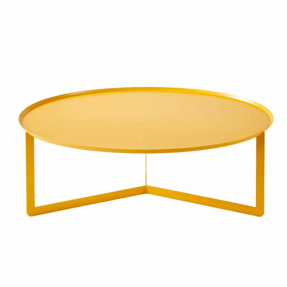 Mesa de jardín moderna redonda, fabricada en barro o metal amarillo maya, lujo made in Italy.