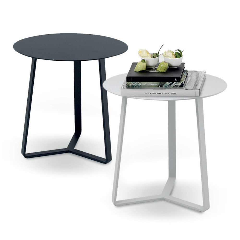 Mesa auxiliar para el jardín compuesta por tapa y estructura en aluminio pintado con polvos epoxi en blanco y antracita .