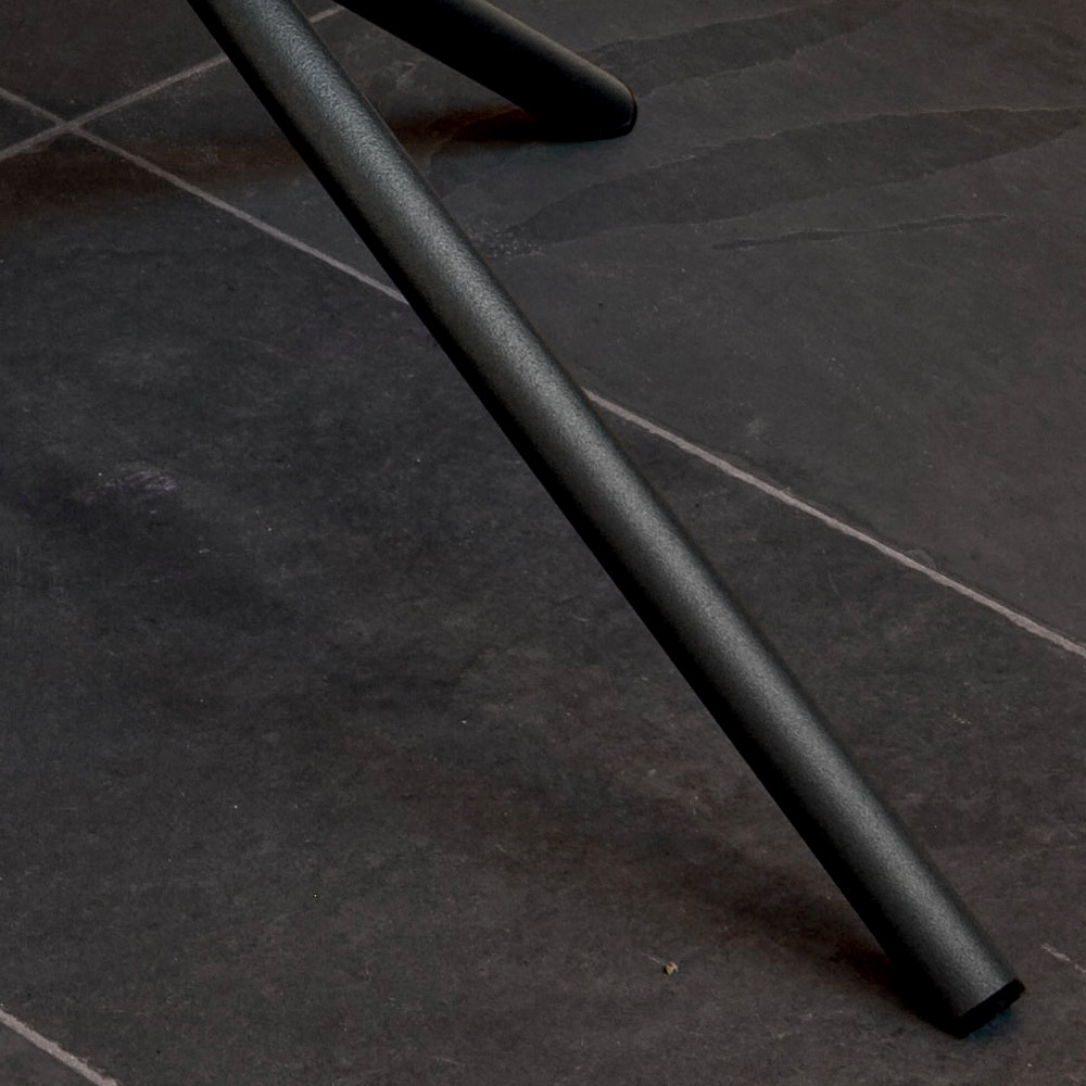 mesa de centro redonda cuenta con una estructura de tejido de metal recubierto de polvo de grafito en relieve