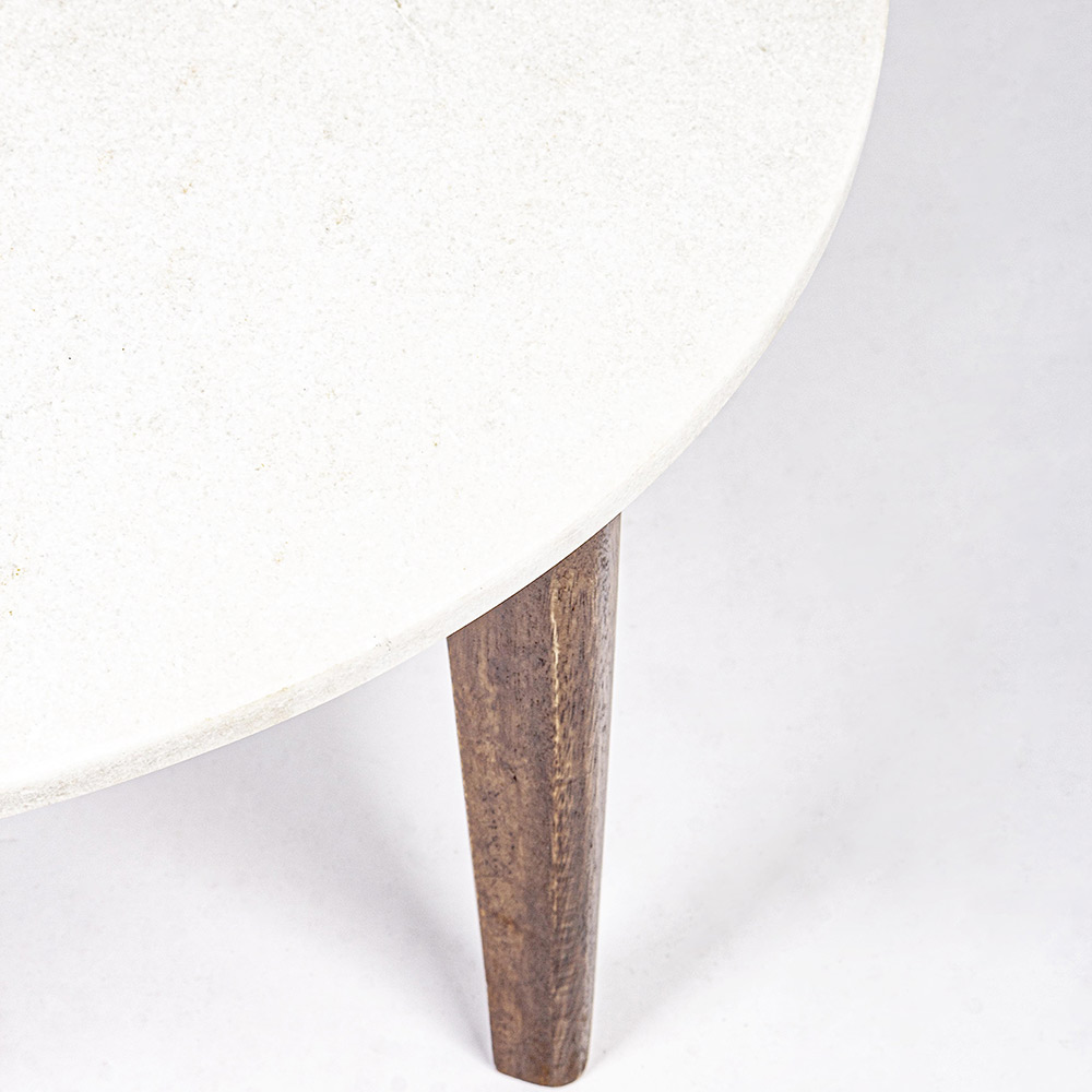 Mesa de centro redonda para salón en mármol y madera de mango - Desiderio