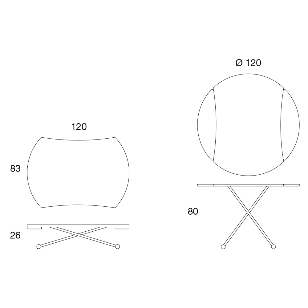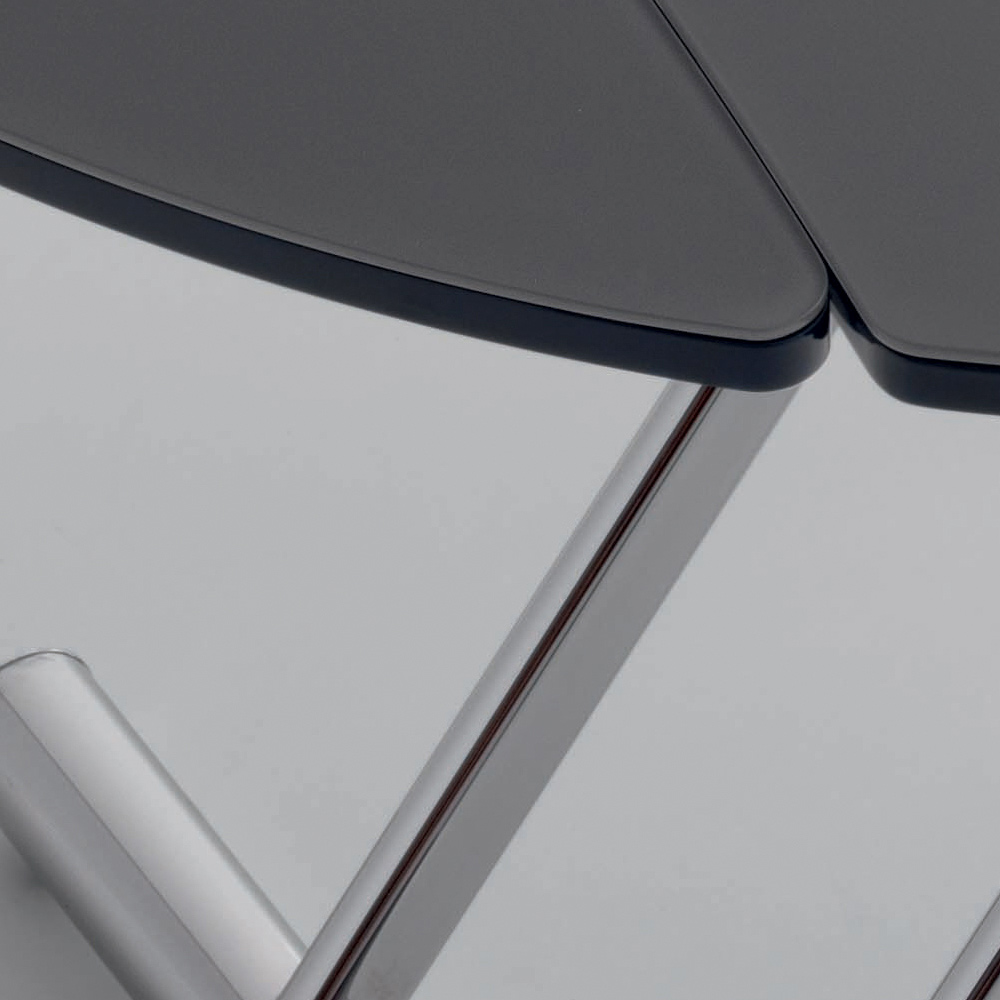 Mesa de centro convertible, base de metal y tapa de cristal, diseño made in Italy.