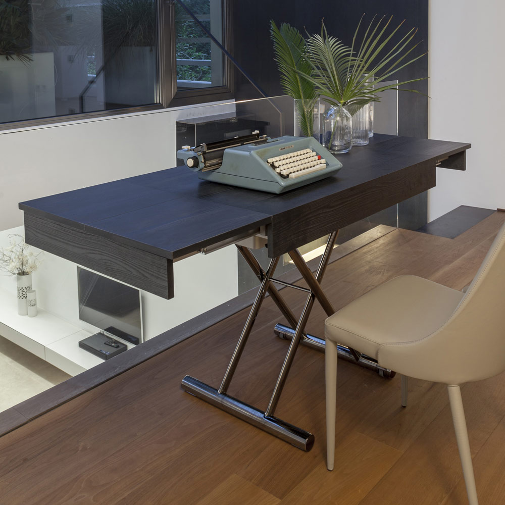 mesa de centro transformable está hecha a mano en Italia con una tapa