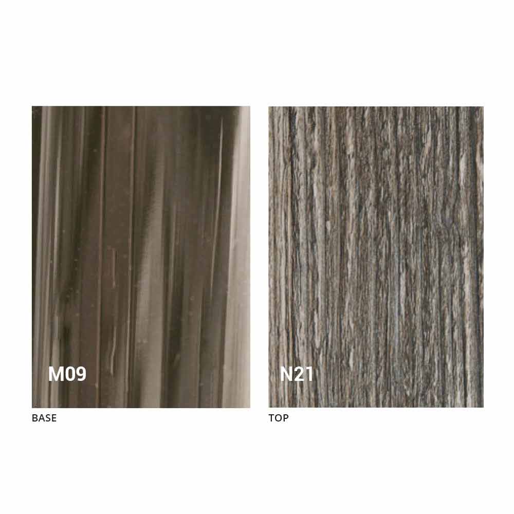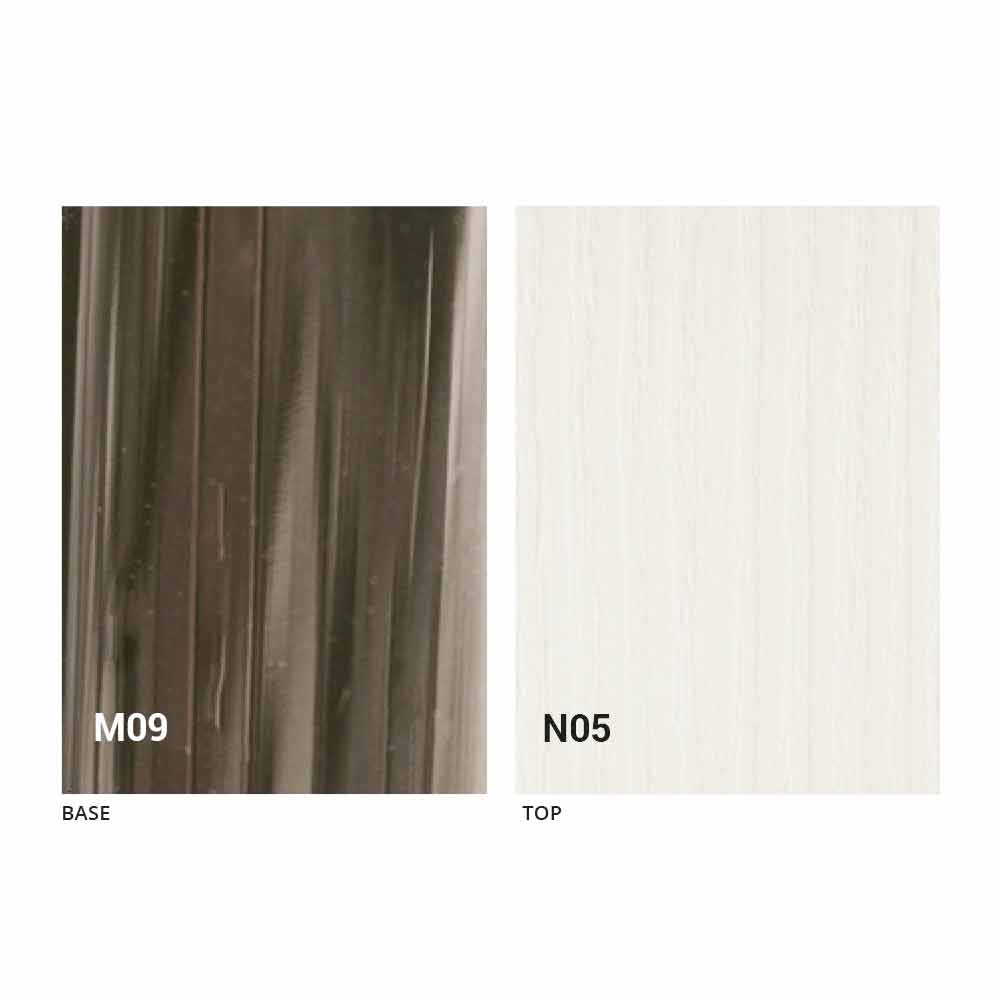 Caracterizado por una tapa en madera de melamina (espesor 12 cm) y una base de metal cromado negro brillante .