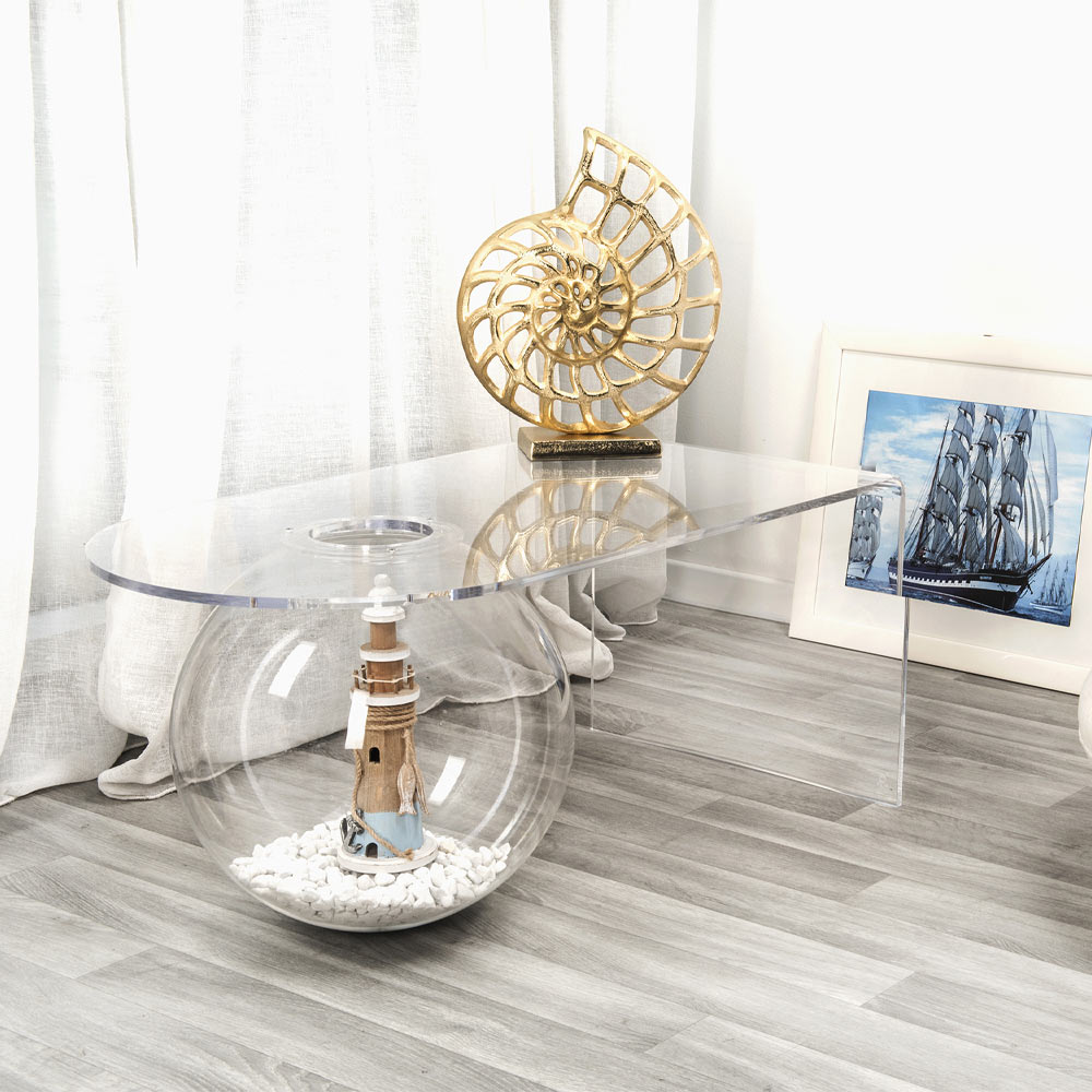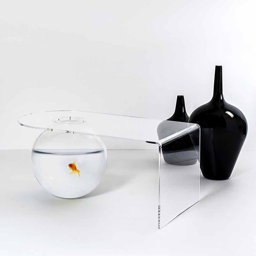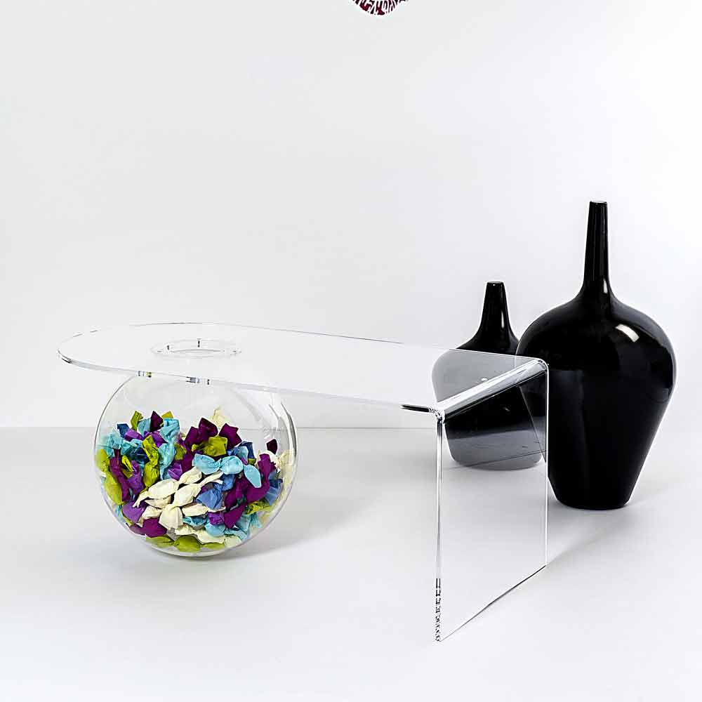Mesa de vidrio de plexiglás PMMA de polímero 100% virgen, cortado con láser, termoformado a altas temperaturas y ensamblado a una estructura esférica utilizable como florero para flores, como acuario o simplemente como contenedor. El plexiglás es a prueba de golpes, indeformable, inalterable y térmico. El brillo y el brillo se mantienen constantes y sin cambios a lo largo del tiempo. El plexiglás de PMMA de polímero virgen utilizado es no tóxico, hipoalergénico, inodoro y antibacteriano. 100% reciclable Diseñado, diseñado y fabricado en Italia, con materiales italianos.