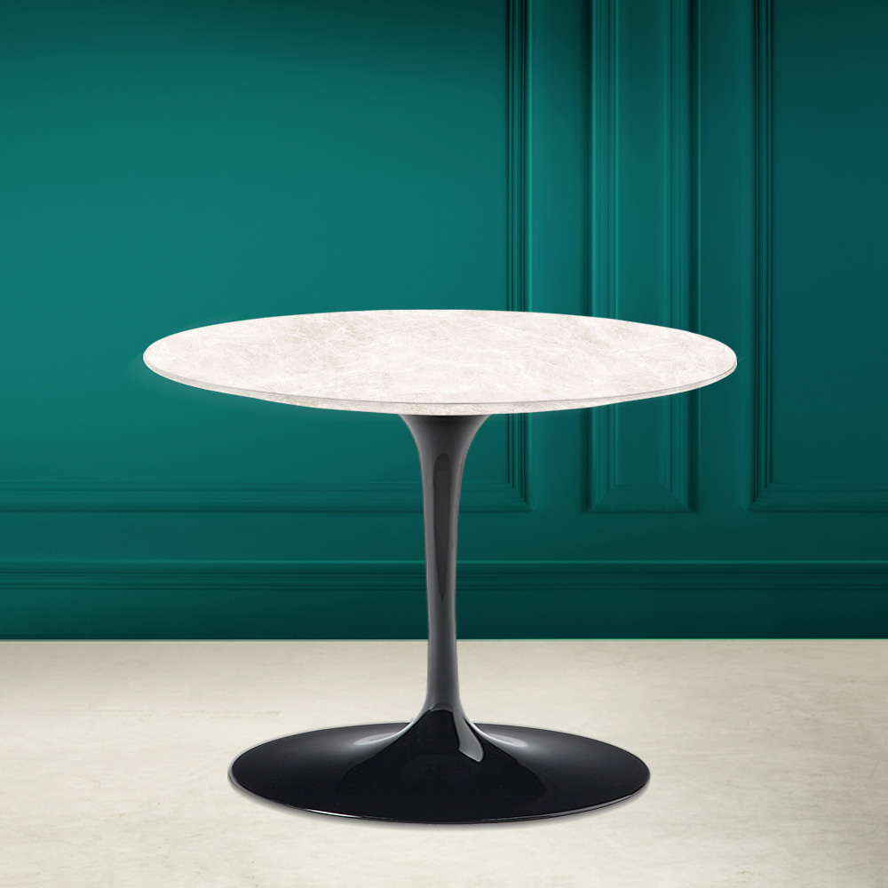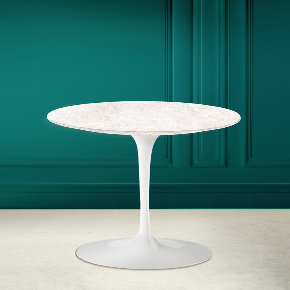 Mesa de centro redonda en cerámica color crema diamante Made in Italy