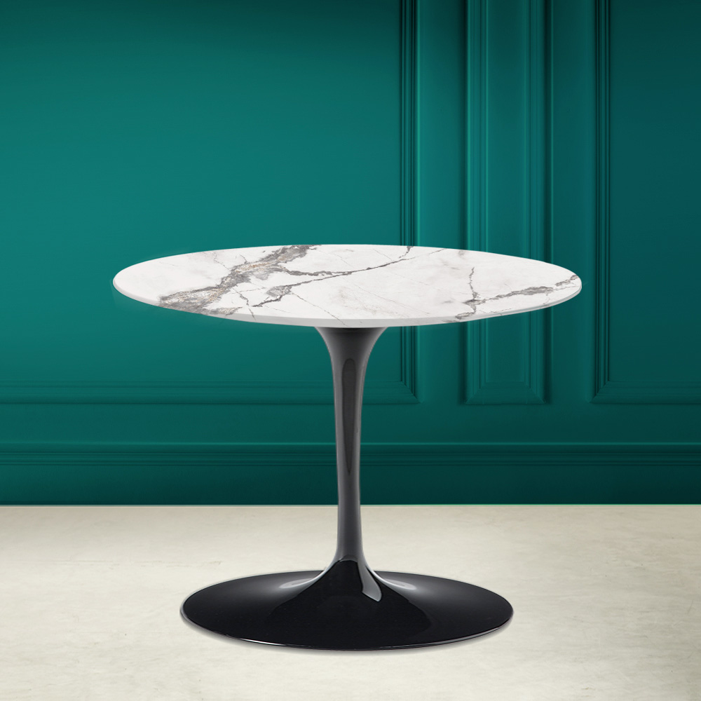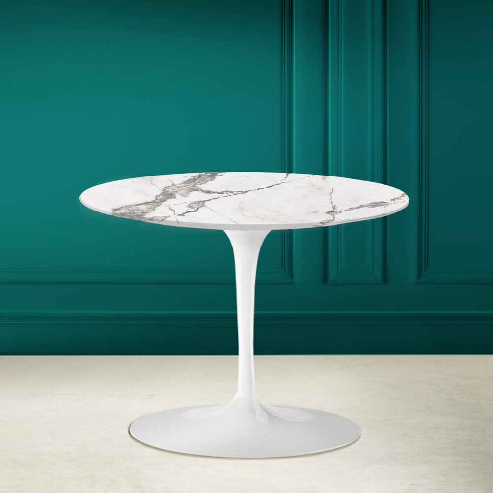 tapa redonda de cerámica selecta invisible, efecto mármol estatuarietto mate y base