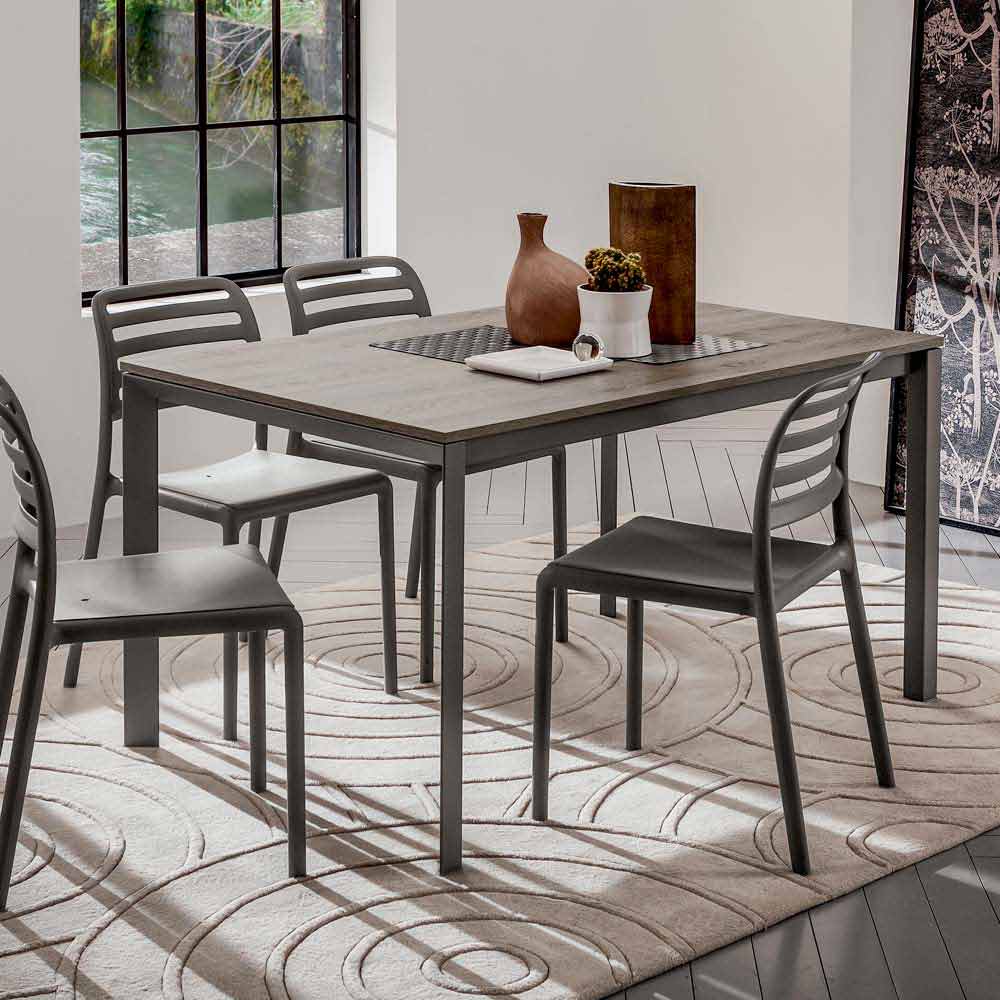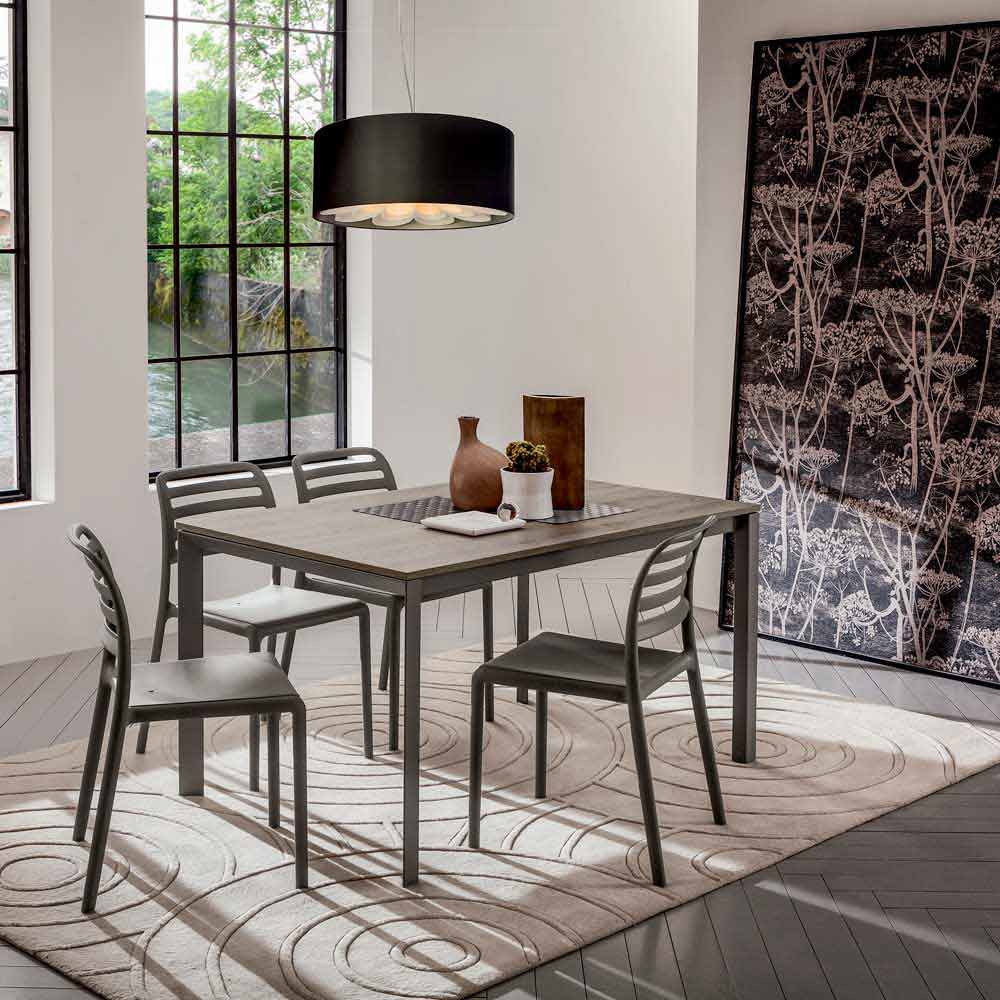 Mesa de comedor con tapa de melamina y estructura de metal Made in Italy.