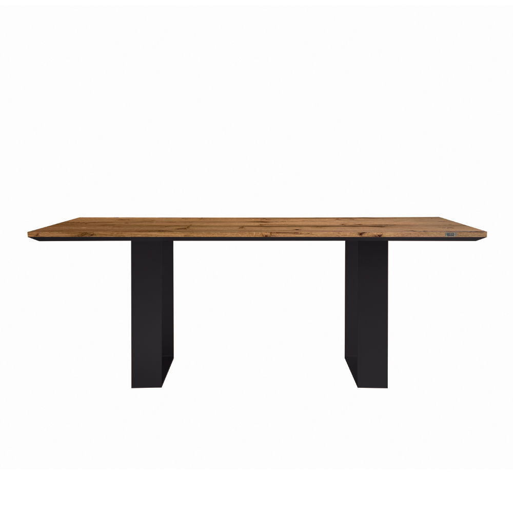 Mesa de comedor de 200 cm en madera maciza con estructura de hierro Made in Italy.