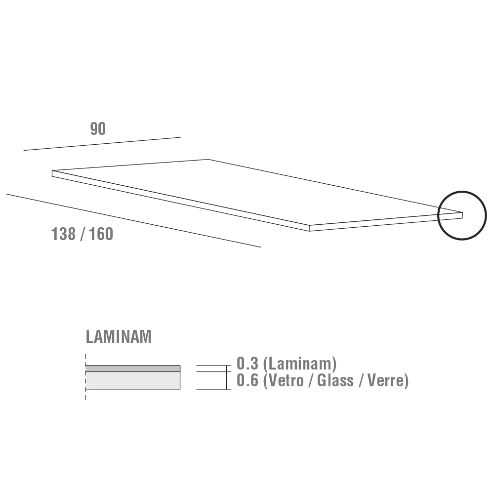 NB : el tablero y la base están disponibles en una amplia gama de acabados diferentes. No se garantiza la continuidad de la veta entre la tapa y la prolongación
