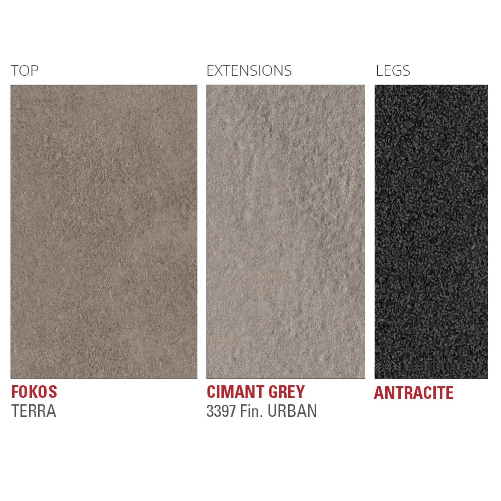 aluminio lacado epoxi en acabado antracita. Su peculiaridad está representada por la tapa de laminam, una