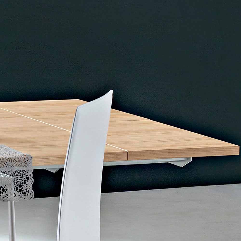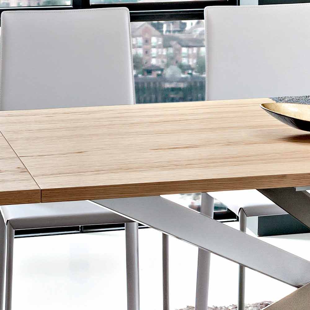 Mesa de cocina extensible con tapa chapada en roble y patas de metal Made in Italy.