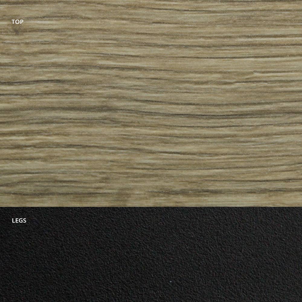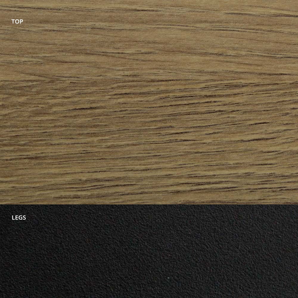 Mesa de comedor en forma de barril en laminado HPL efecto madera y acero Made in Italy.
