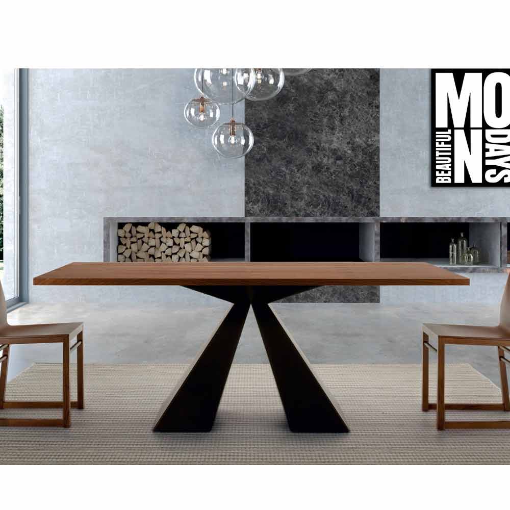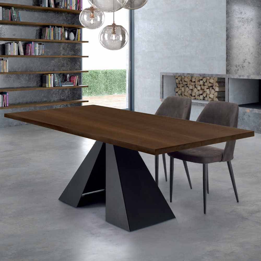 Mesa de comedor con tapa chapada y base de acero Made in Italy, alta calidad.