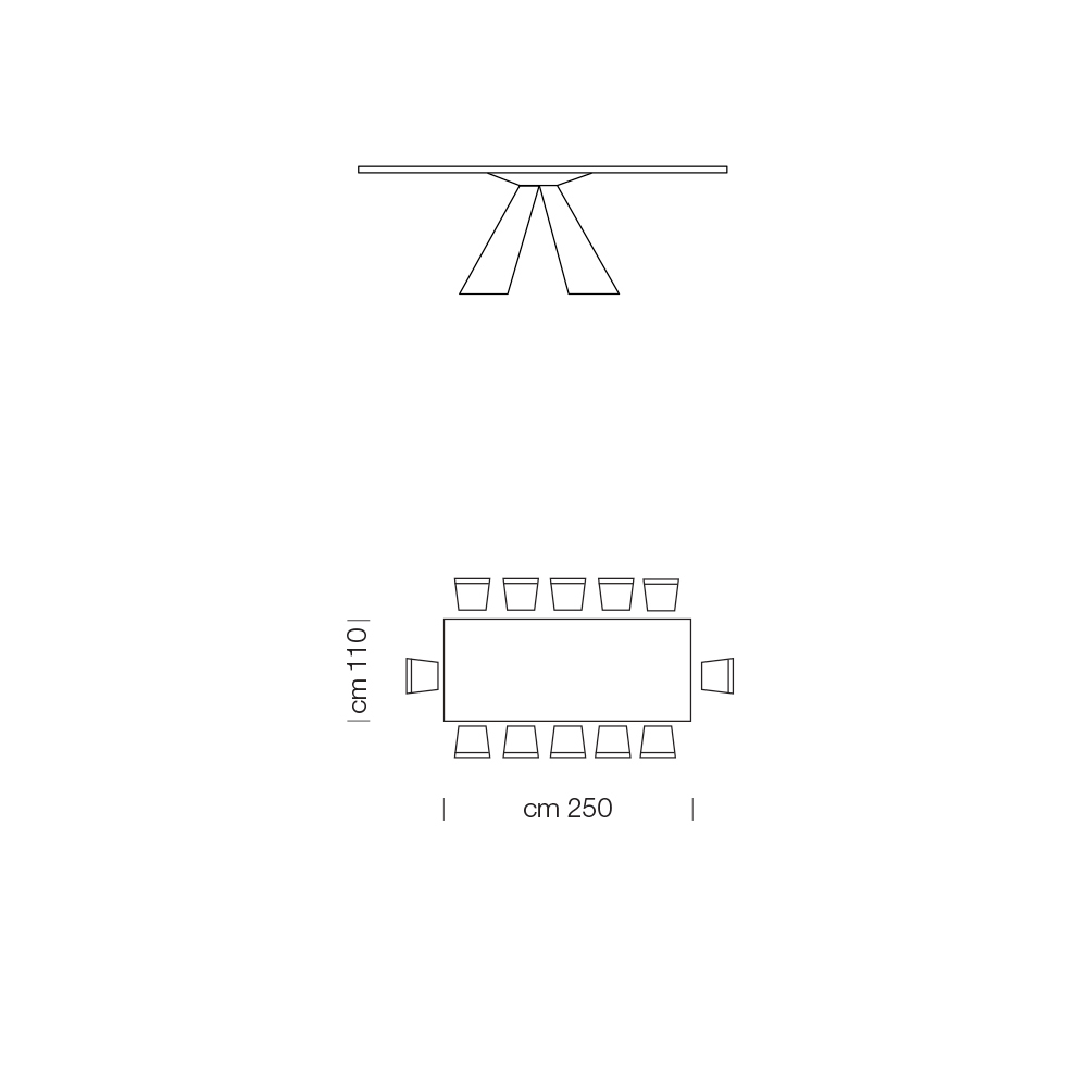 - L 250 x P 110 x Al 75,5 cm (12 asientos).