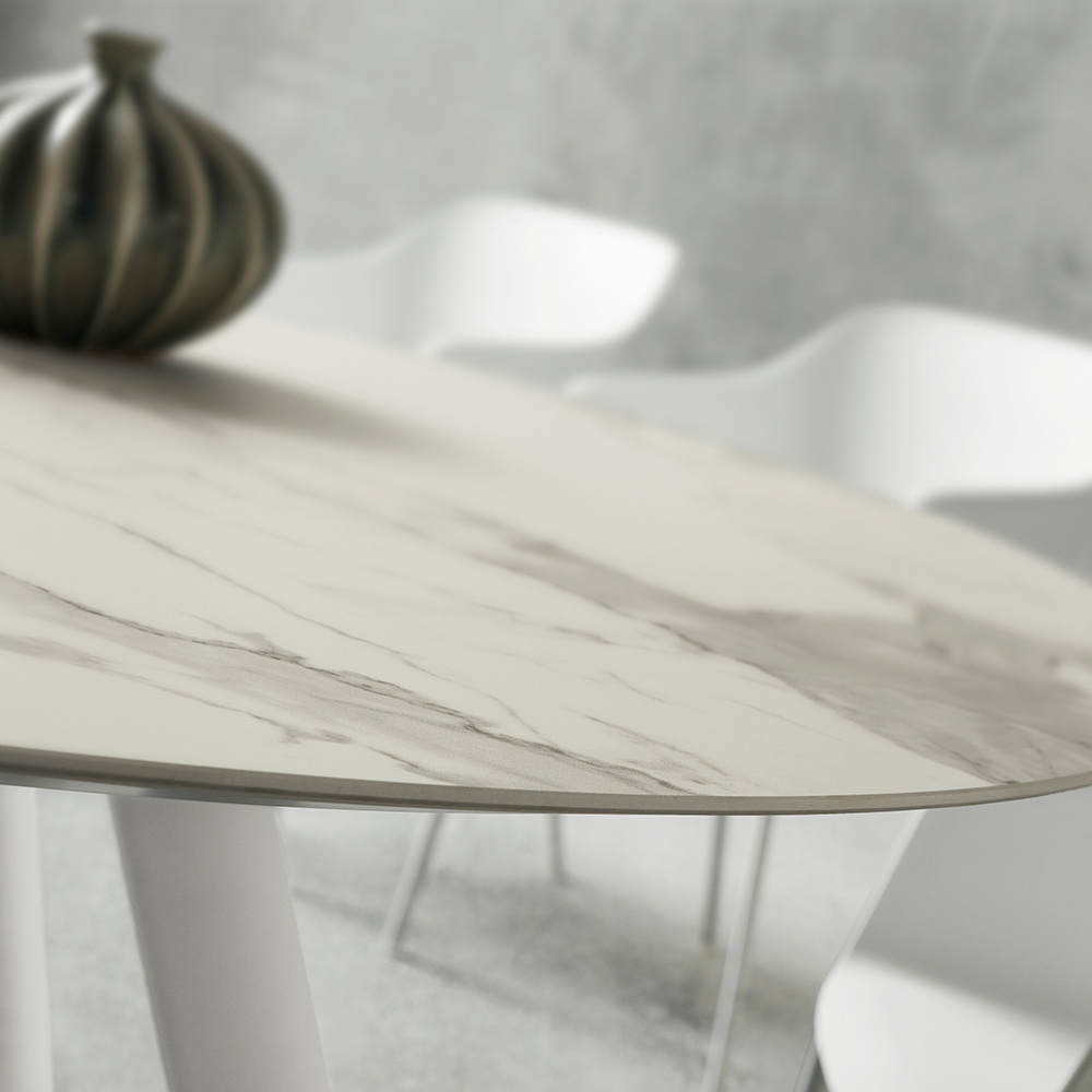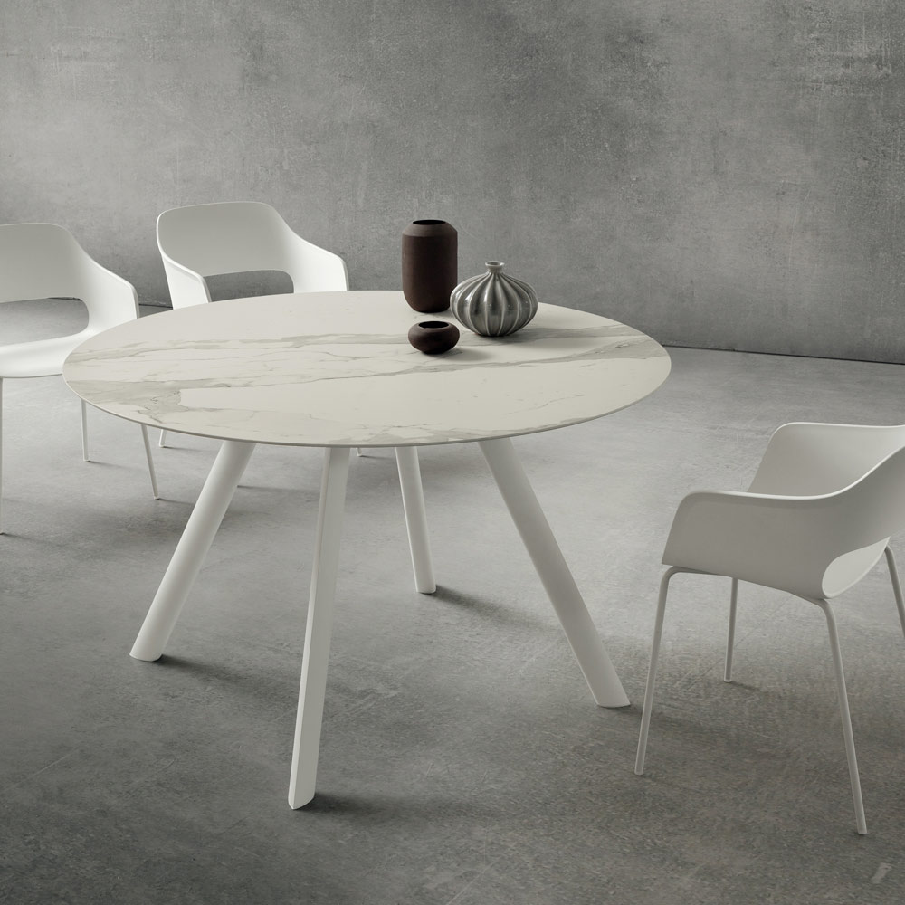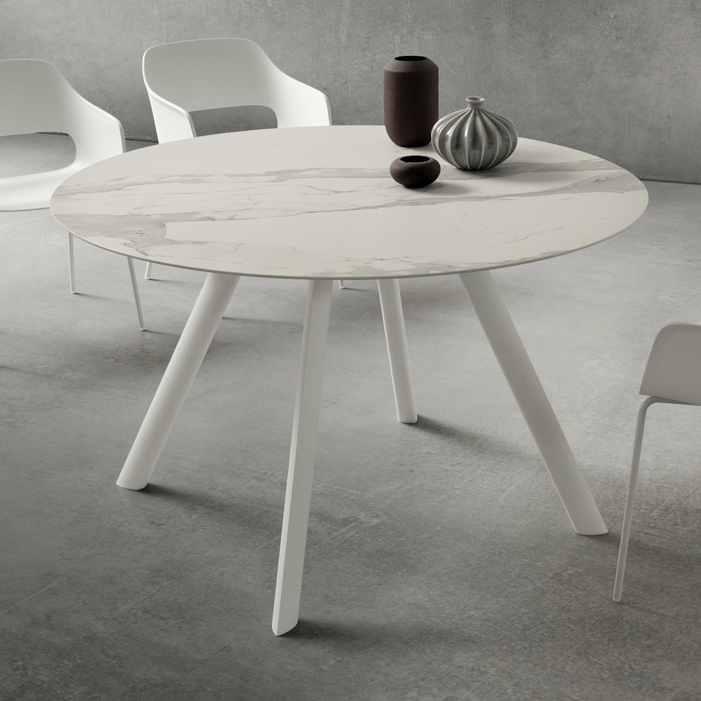 Mesa de comedor de lujo con tapa redonda de cerámica laminada Made in Italy.