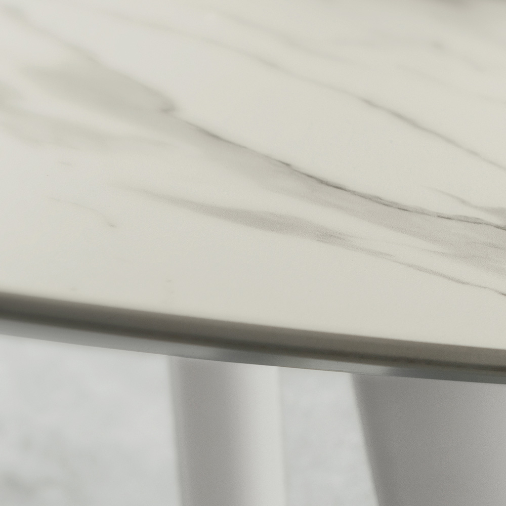 de aluminio lacado en polvo epoxi en acabado blanco. Del encuentro entre la elegancia atemporal del efecto mármol y el efecto piedra y el toque moderno del aluminio, nace un mueble de
