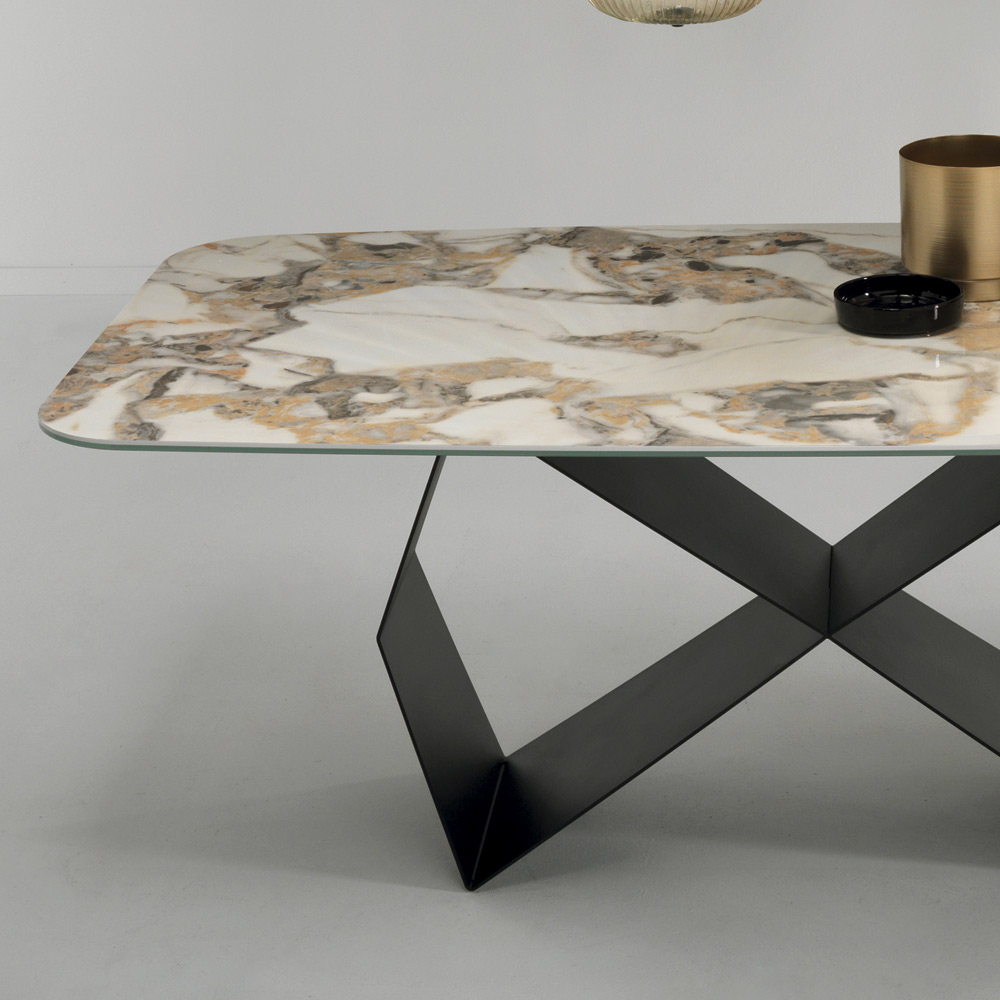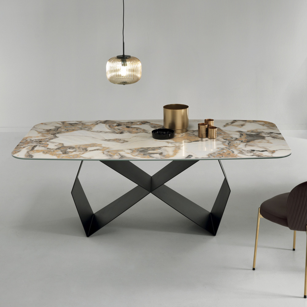 Mesa de comedor en cerámica efecto mármol y metal negro Made in Italy.