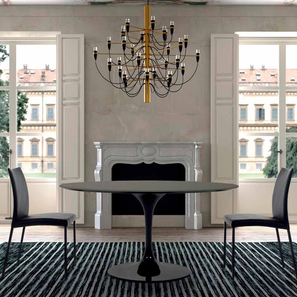 Mesa de comedor redonda en fenix y aluminio lacado, Made in Italy, alta calidad.