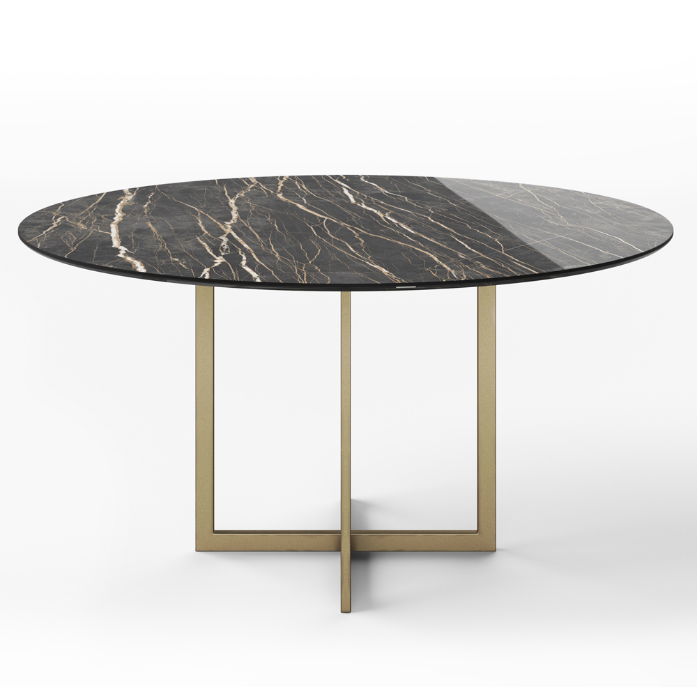 Mesa de comedor redonda en gres porcelánico y metal Made in Italy.