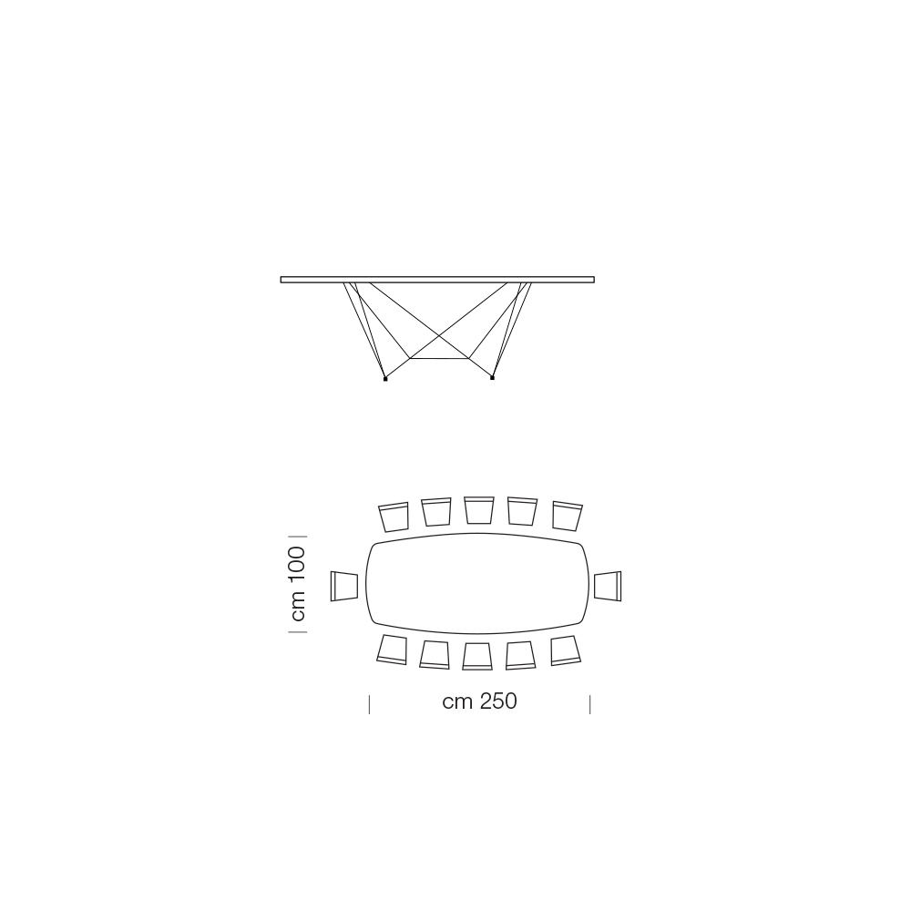 alma refinada capaz de completar comedores o cocinas de estilo moderno de forma exclusiva, aportando un toque revolucionario. La estética de la mesa también se enriquece con la particular forma de la base que, ofreciendo un detalle original a la estética del producto, da vida a una