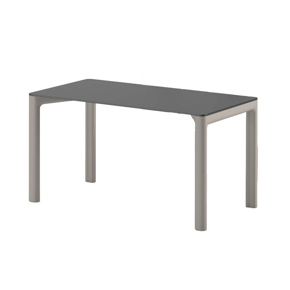 Mesa de comedor de diseño con estructura de polietileno y tapa de hpl Made in Italy.
