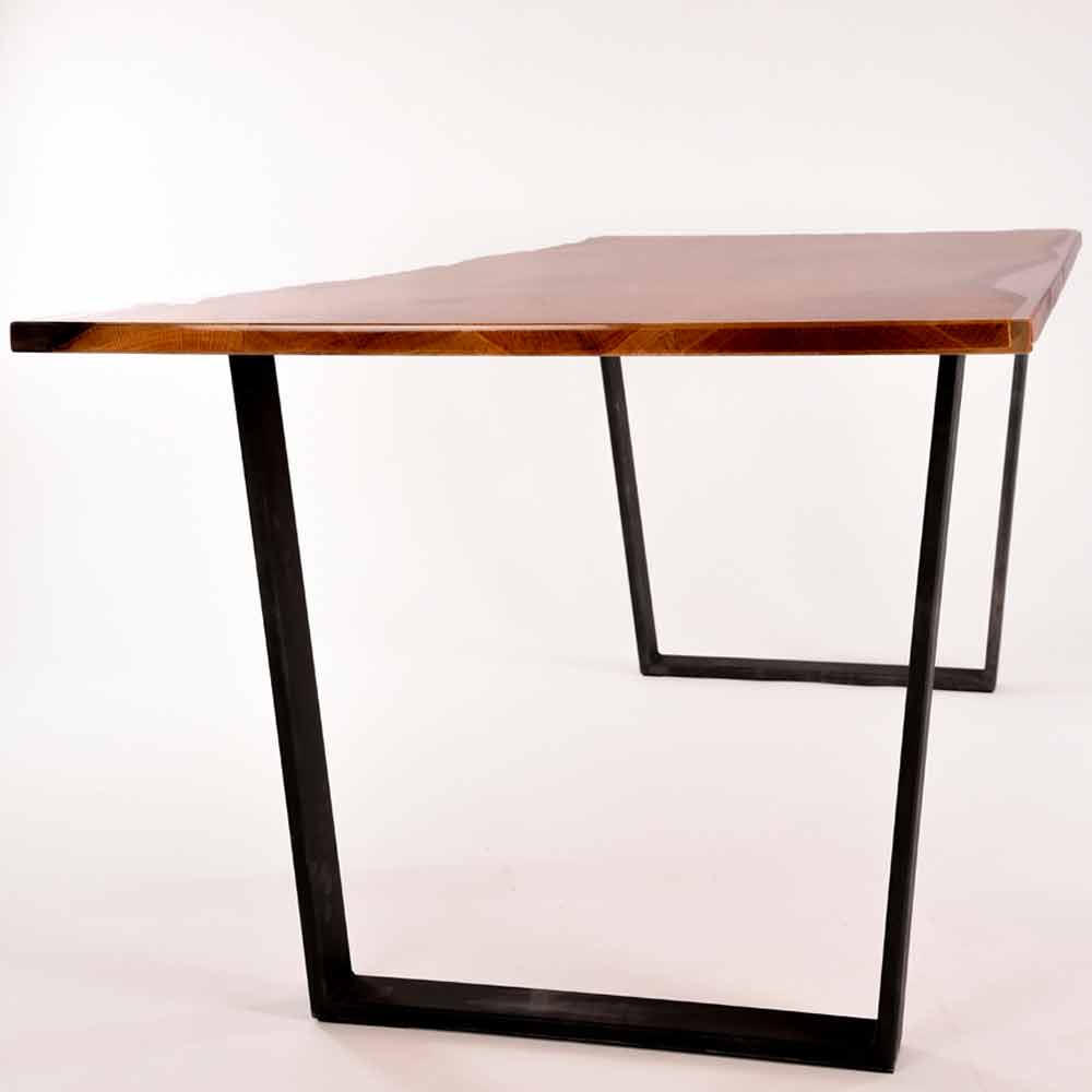 La simplicidad del diseño de la mesa Rino puede complementar naturalmente cualquier interior. Consiste en una sola tabla de madera que puede ser de roble, cedro, cerezo, briccola sumergida en resina transparente.