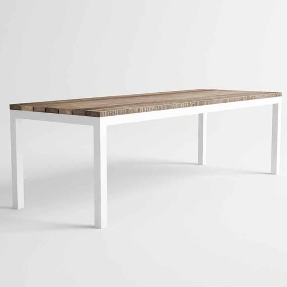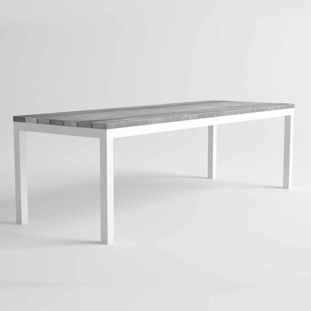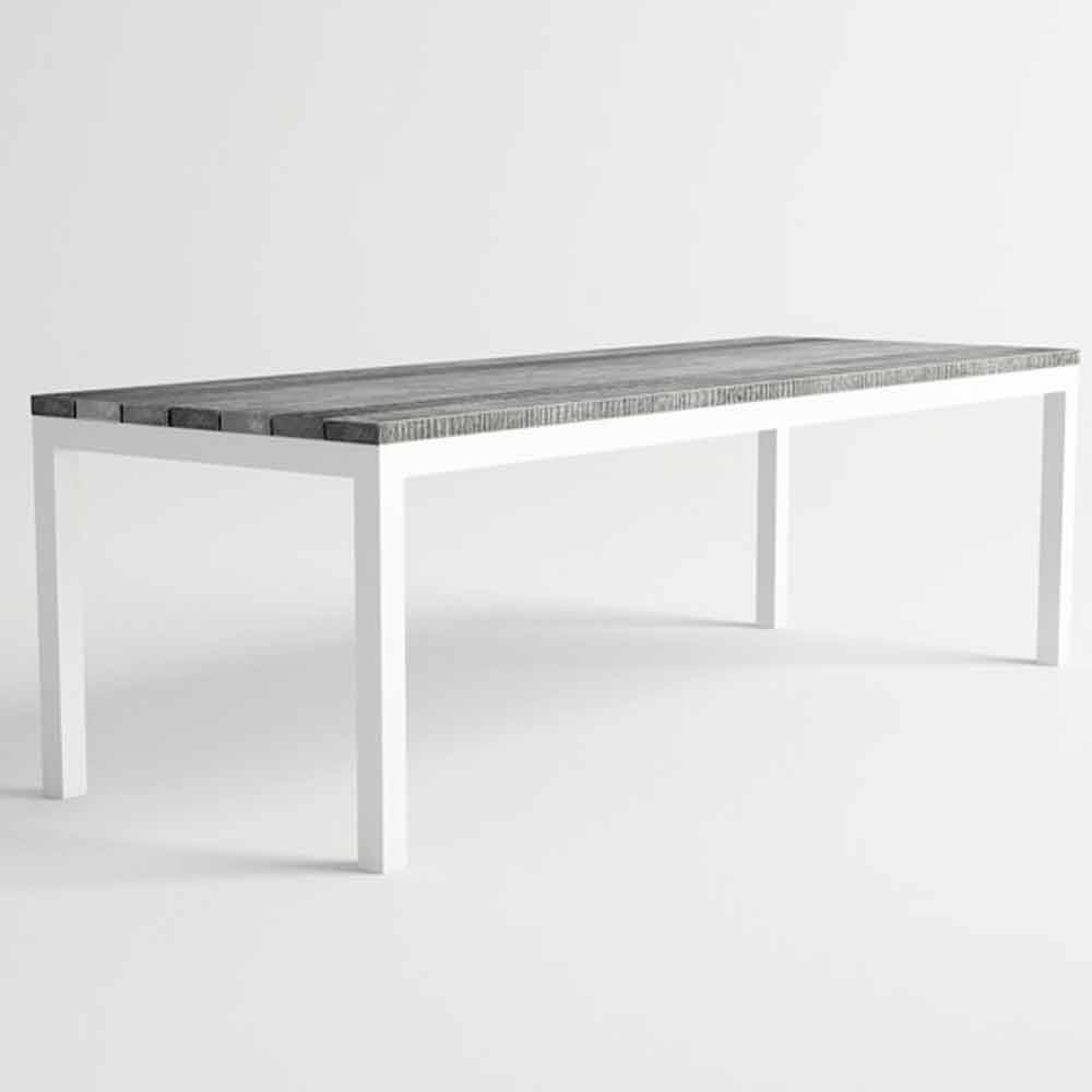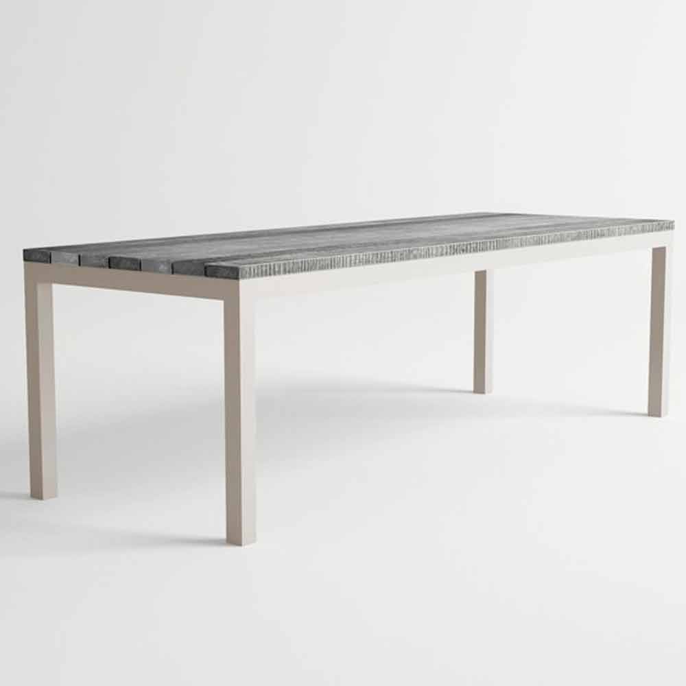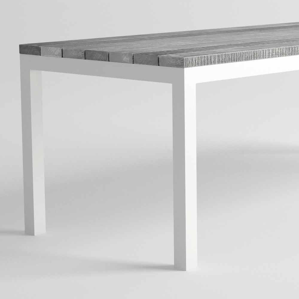 Mesa de jardín de diseño moderno, estructura de aluminio y madera, disponible en diferentes colores.