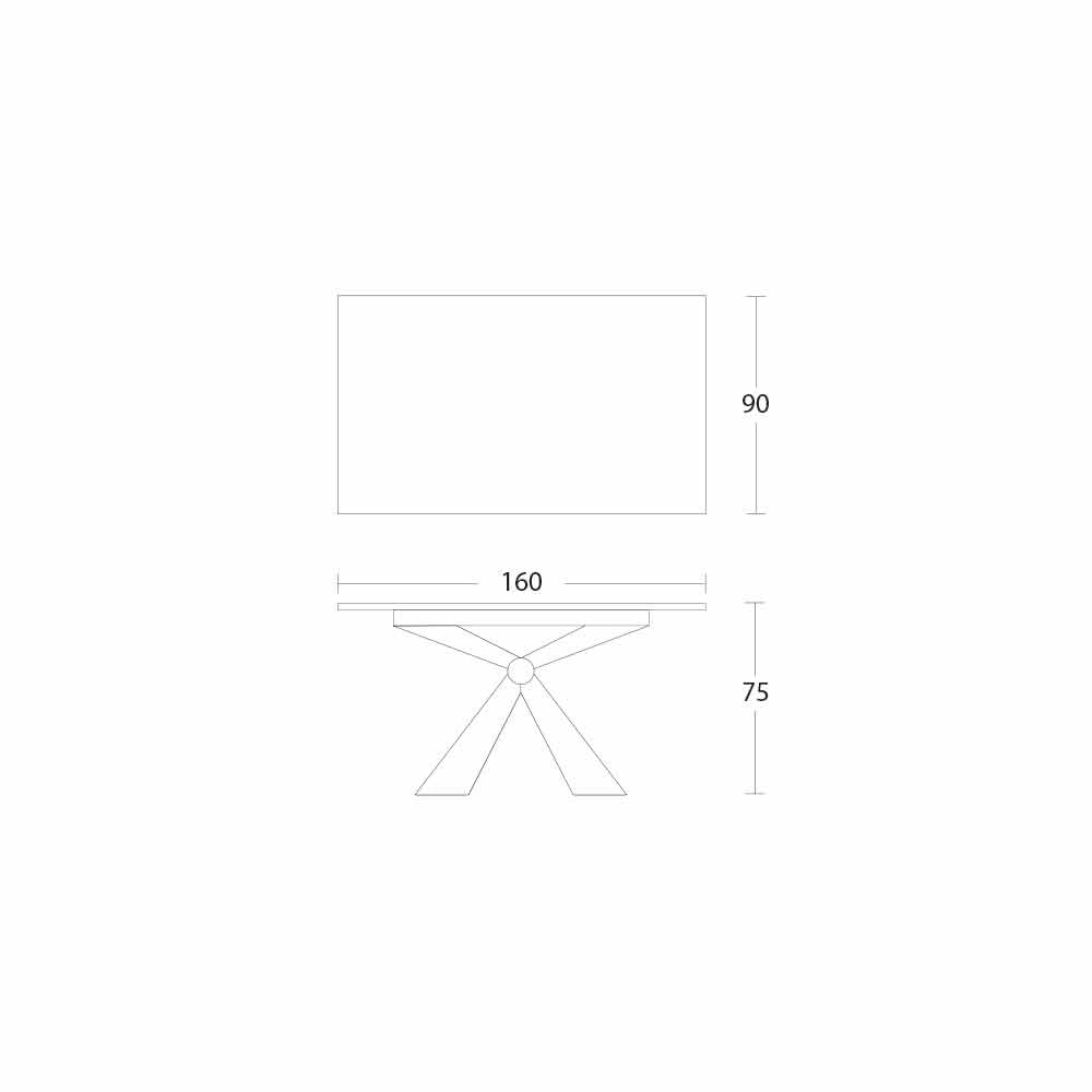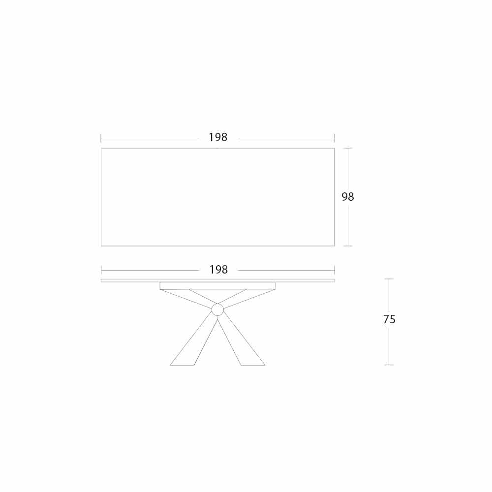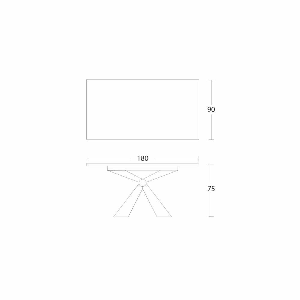 Mesa de comedor en cerámica laminam y base con nudo de metal made in Italy.