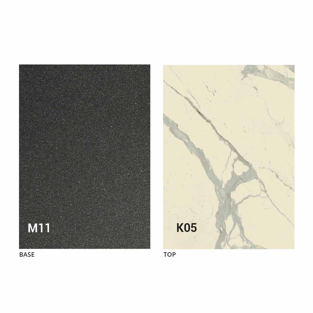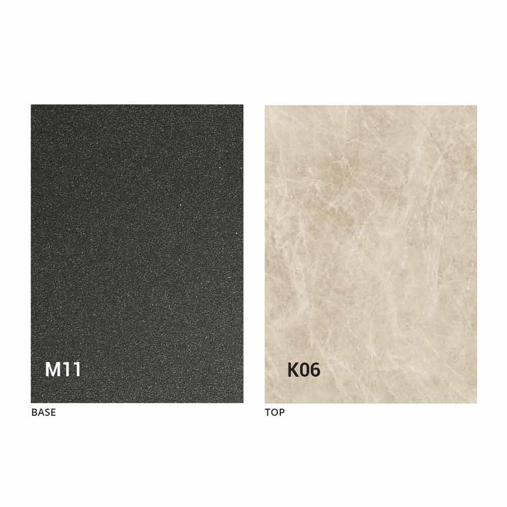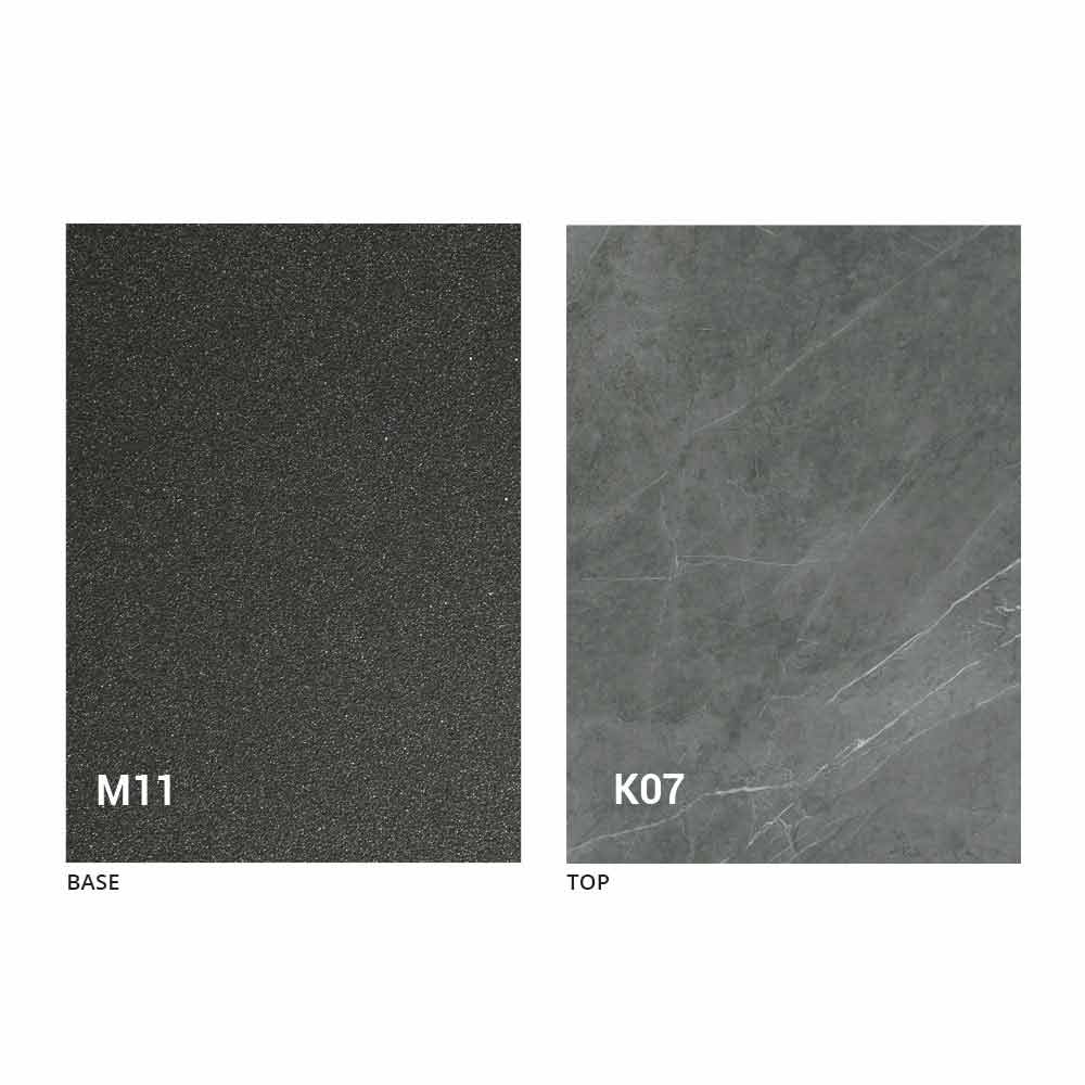 una tapa de panel MDF con laminado cerámico en la superficie, disponible en varios acabados, y una