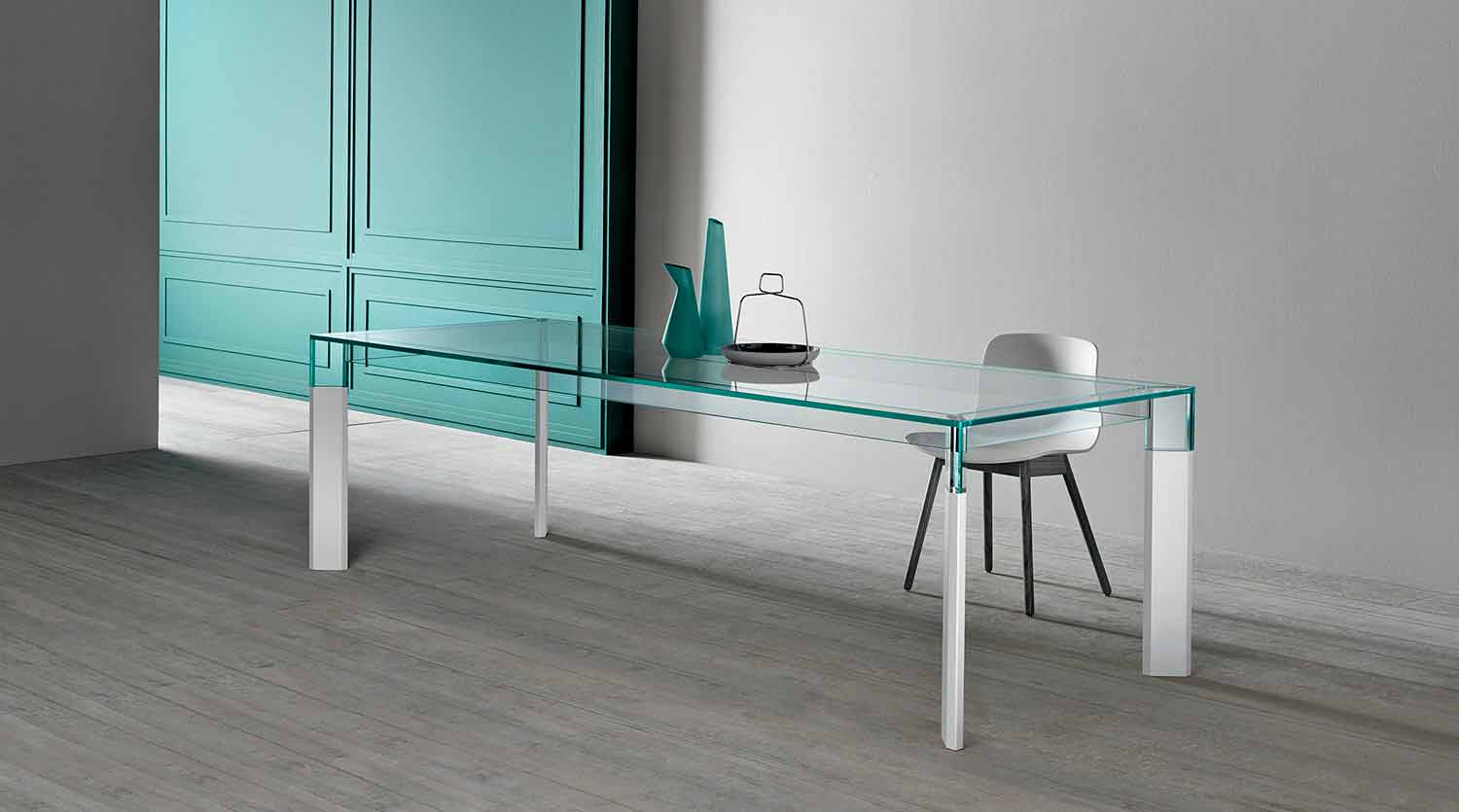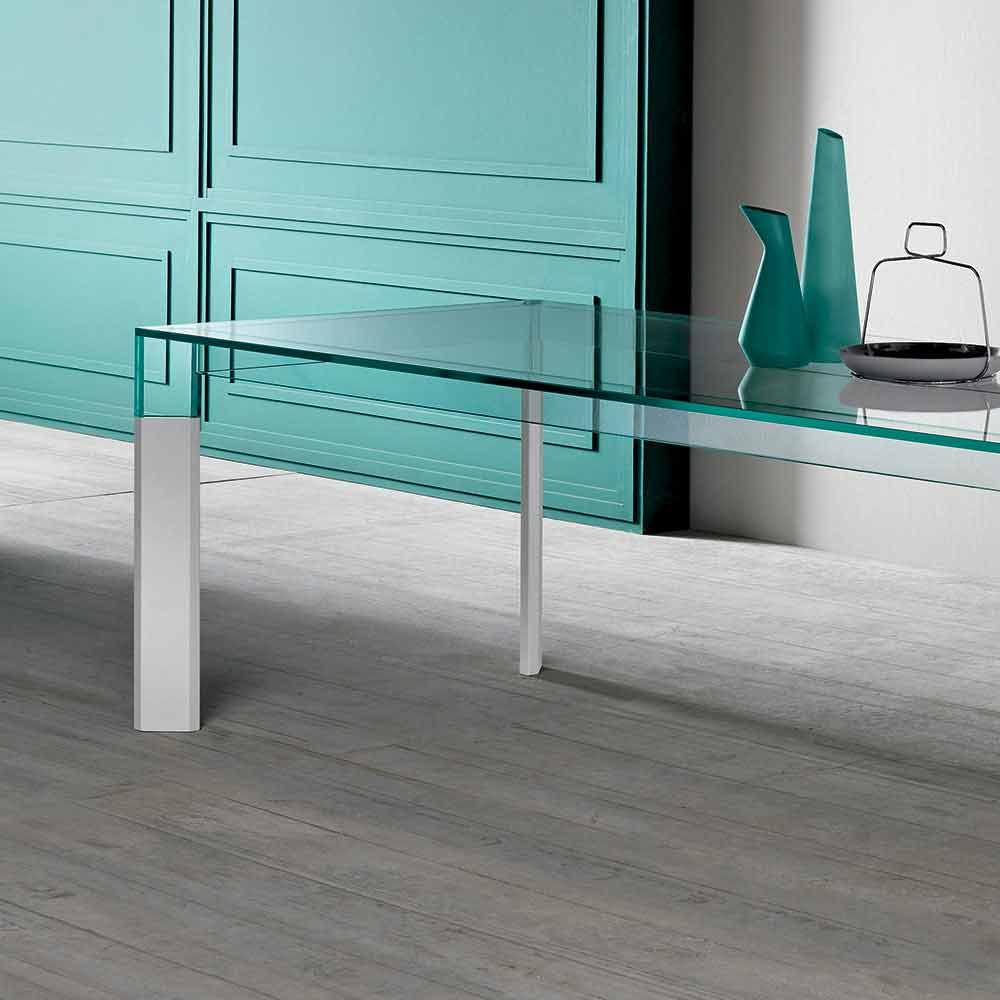 tapa de cristal extra claro (15 mm de grosor) y patas extraíbles en