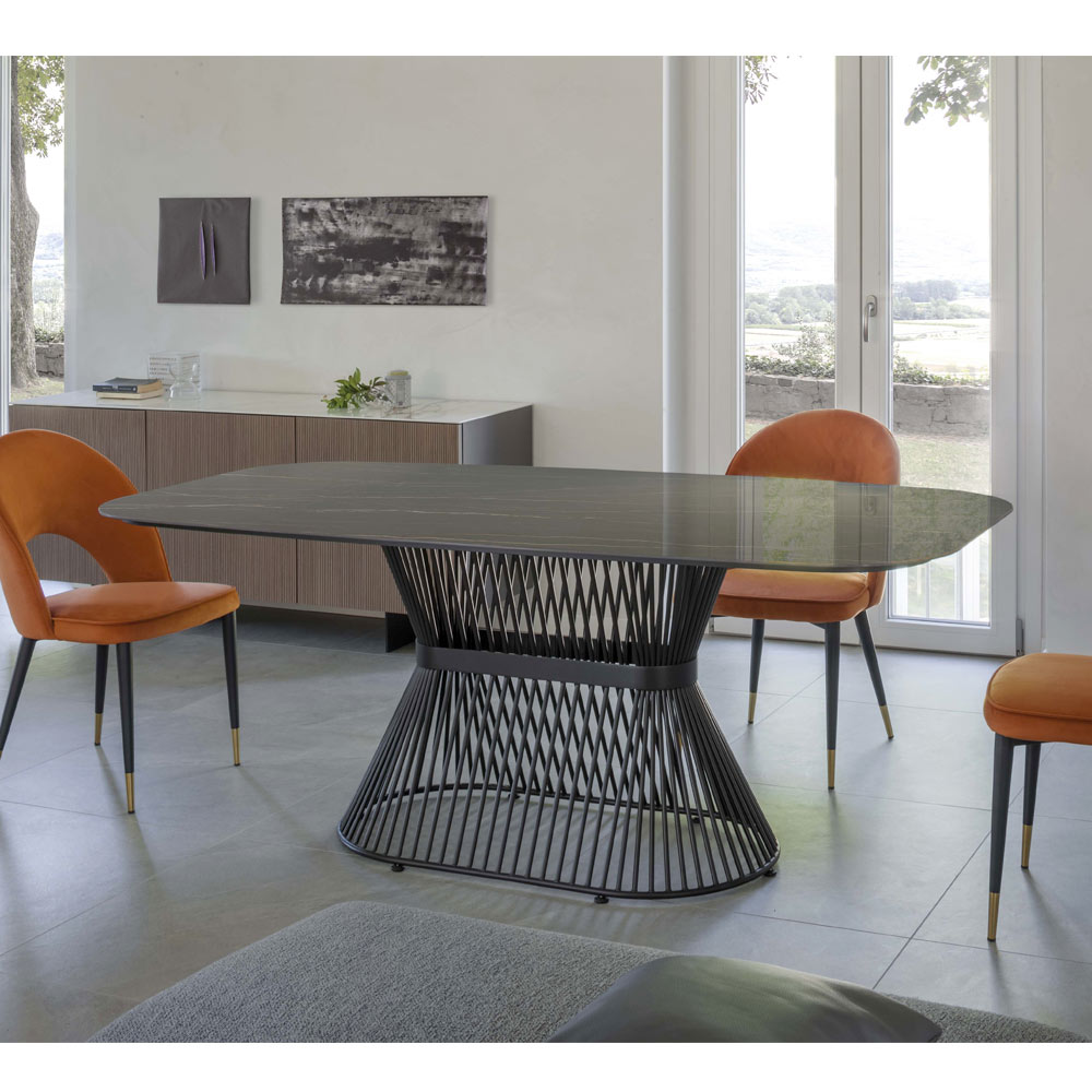 acero pintado en negro. Este artículo de diseño moderno es perfecto para incluir en zonas de estar, cocinas y salones con un estilo elegante y contemporáneo. La posibilidad de ampliarse significa que se adapta a todas las necesidades y ocasiones de uso, para invitar a amigos y familiares y crear momentos de convivencia únicos e inolvidables.