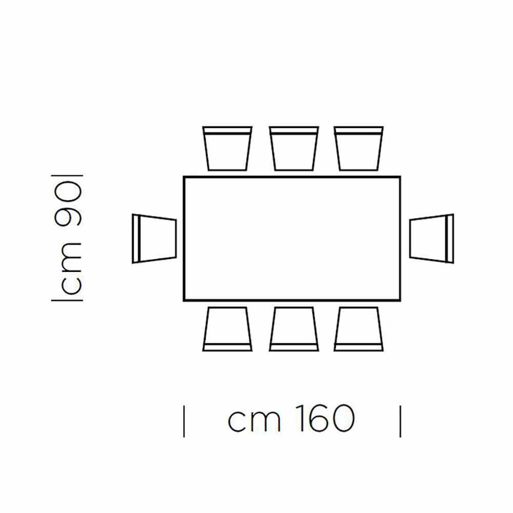 • L 160 x P 90 x Al 75,5 cm (8 asientos);