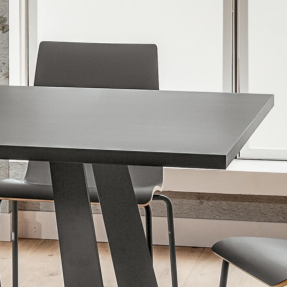 metal pintado con polvos epoxi a juego con la tapa. Ideal para completar ambientes con un estilo extremadamente moderno, este complemento de líneas simples y minimalistas se caracteriza por la particular forma de las patas que otorgan a la mesa un estilo aún más original y refinado y dan vida a una