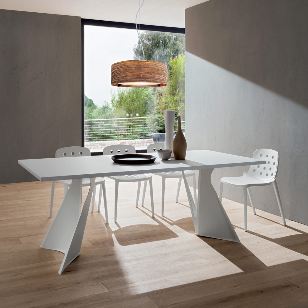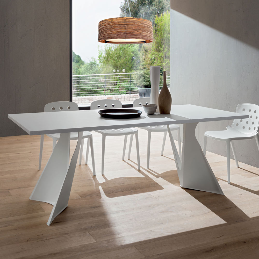diseño imponente y majestuoso . Esta característica enriquece su estética junto con la forma inusual de las dos patas que le dan a la mesa un aspecto casi futurista, haciéndola especialmente adecuada para quienes aman decorar y enriquecer sus habitaciones con elementos con